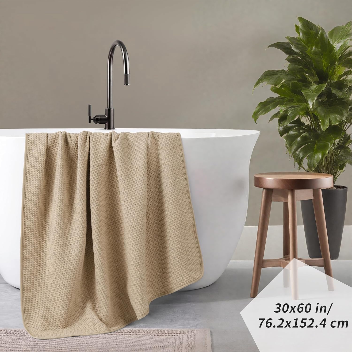 POLYTE Microfiber Oversize Quick Dry Lint Free Waffle Bath Towel for Body, 60 x 30 in, Set of 2