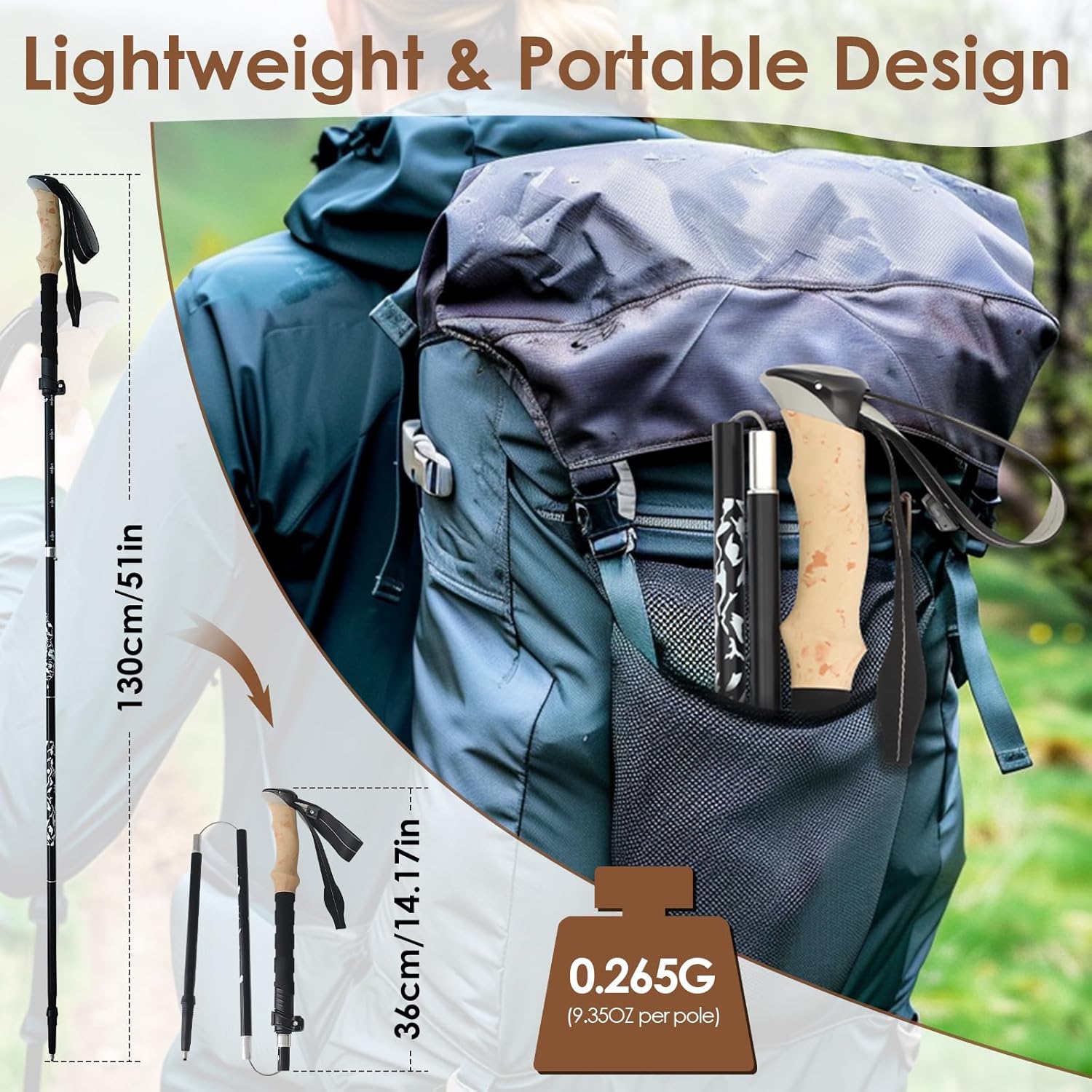 - 【Strong & Durability】 : Built with premium aluminum, these hiking poles collapsible lightweight outlast carbon fiber. They handle rocky trails, heavy loads, and icy slopes—your reliable walking sticks for hiking companion.