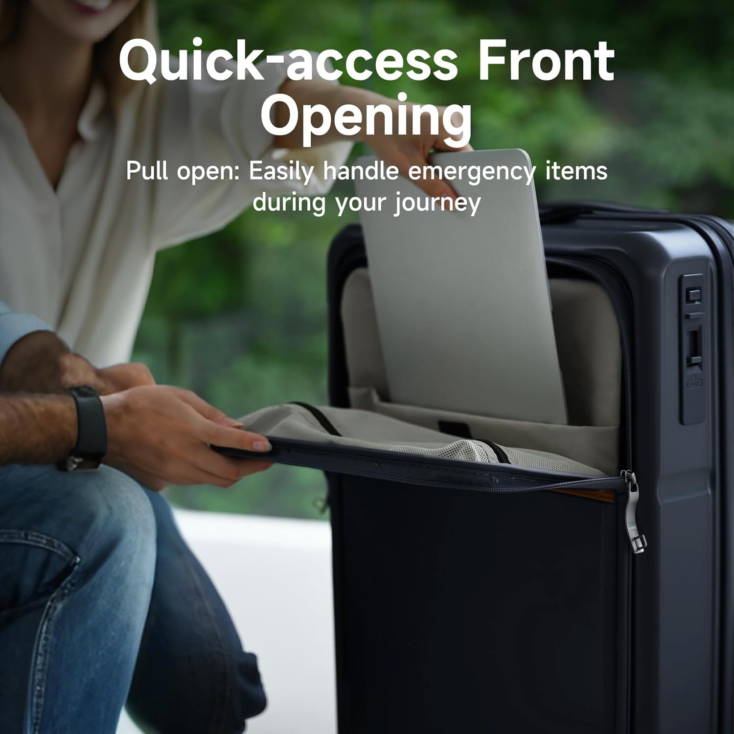 - 【Dual Opening Design】: Featuring an innovative dual-opening mechanism that allows for effortless opening or closing of the suitcase. The half-opening design accommodates a 15.6-inch laptop and other small items, enhancing both loading convenience and space efficiency. This design addresses the challenge of traditional two-compartment luggage being difficult to open or close under heavy load while preventing item displacement.
