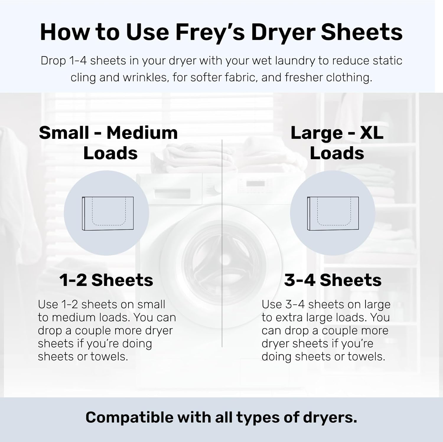 FREY Naturally Scented Dryer Sheets - Fabric Softener for Soft, Fresh & Clean Clothes (1-pack, Fragrance-free)