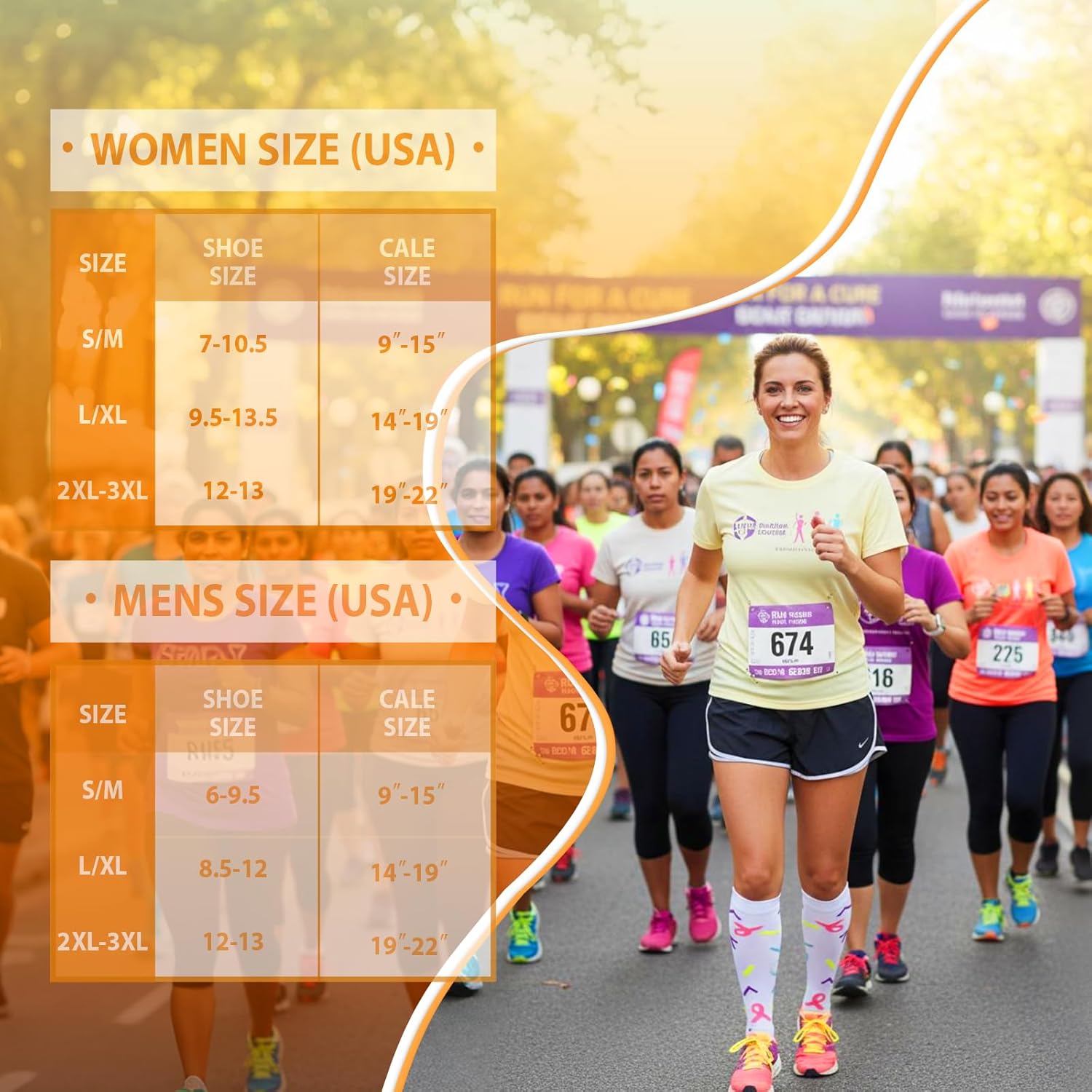 - ✅BEST COMPRESSION SOCKS FOR WOMEN & MEN – An Excellent compression hose, very durable, and fashionable look.More Size Choice,Small-3x-large,wide calf also can find fitable size. Washable & designed with Quality Lycra Fabric, built for durability. Customers agree, that the comfort is amazing. Your durable sleeves work with your routine. It is a great gift to joggers, athletes, workout fanatics, office workers, parents or grandparents, runners, nurses and doctors.