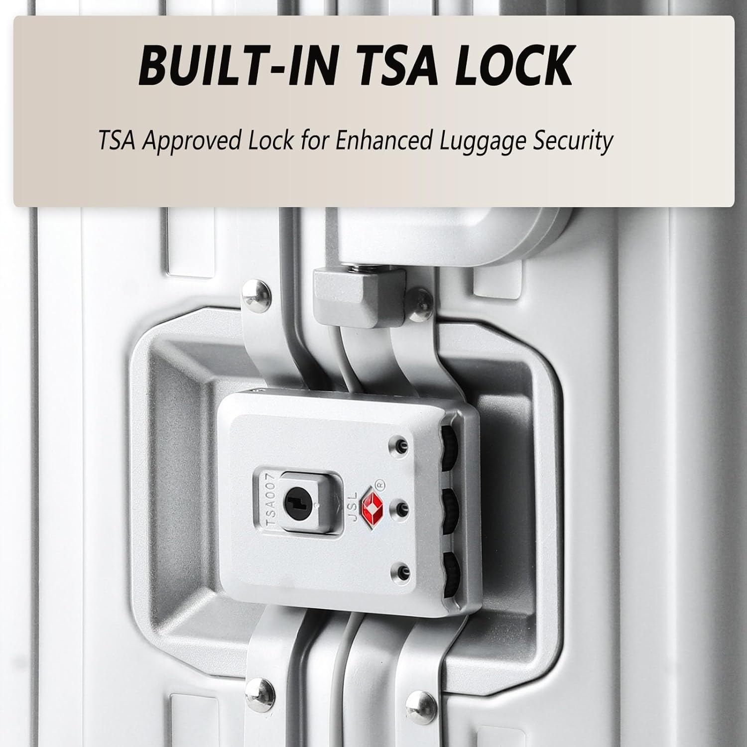 - Premium All-Aluminum Hard Shell & Zipperless Security: Crafted from 100% aluminum, this heavy-duty luggage offers high durability and a sleek, dent-resistant finish. The zipperless design with dual TSA locks helps prevent zipper jams, enhances security, and ensures long-lasting smooth operation for your hard-case luggage.