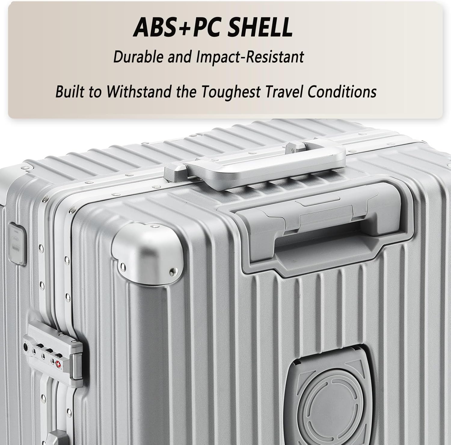 - Durable ABS+PC Hard Shell:Made from premium ABS+PC composite material, this hard shell suitcases series provides reliable heavy duty luggage performance. Its hard case luggage withstands 300 lbs of pressure in tests and features a scratch-resistant texture to help maintain its appearance over multiple trips. Suitable as mens carry on luggage, travel luggage, or luggage for international travel for frequent flyers
