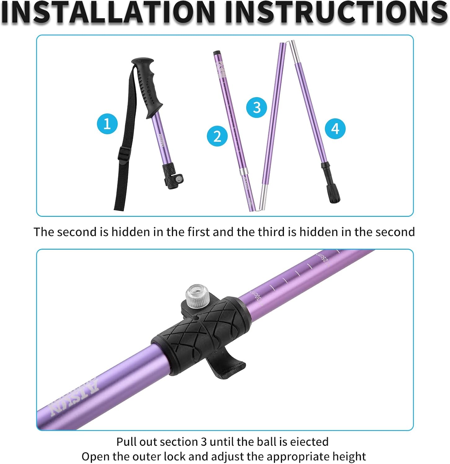 AISUNOURDOOR Lightweight Adjustable Trekking Poles, Aluminum Collapsible Travel Hiking or Walking Sticks for Women Children, with One Disposable Raincoat