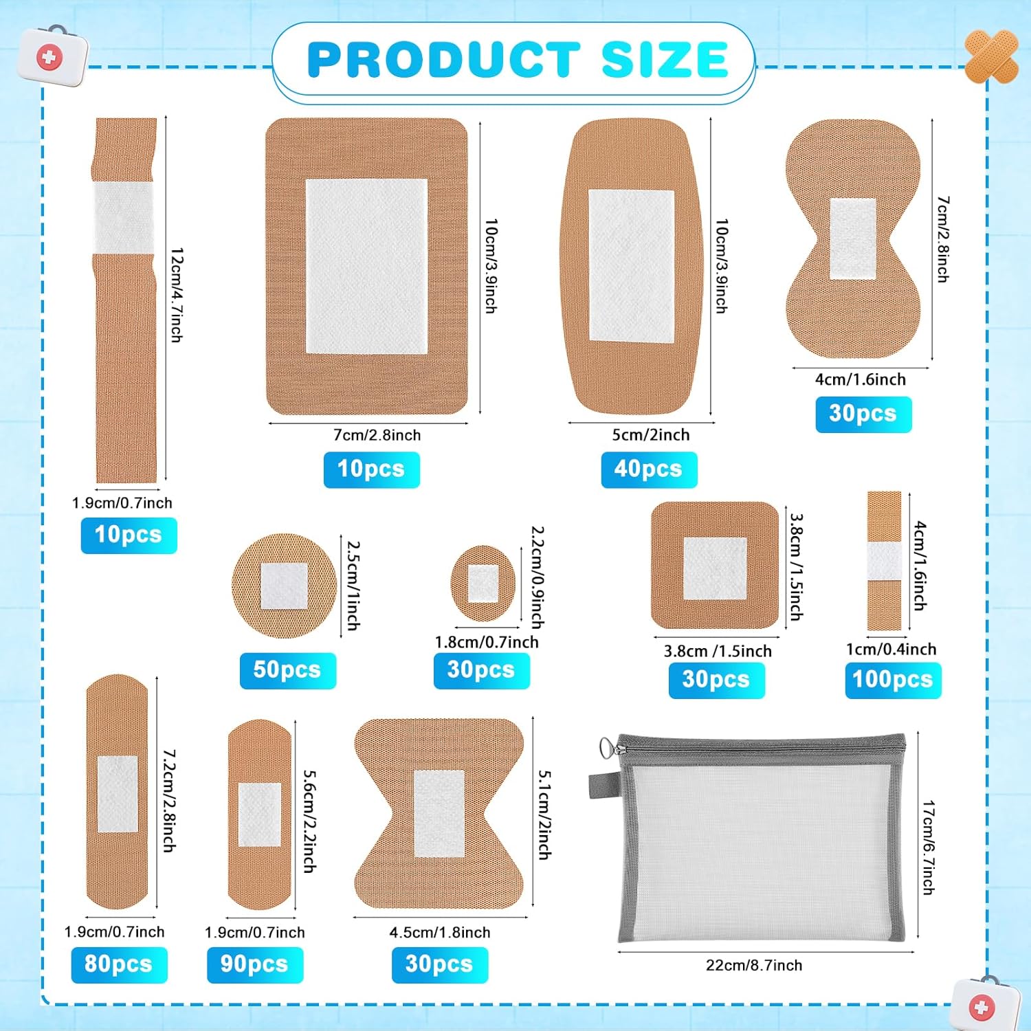 - Convenient Storage with Zipper Bag: Our pack includes a reusable zipper storage bag (8.7” × 6.7”) for easy organization, keeping your bandages neatly stored and ready for quick access during emergencies or daily use.