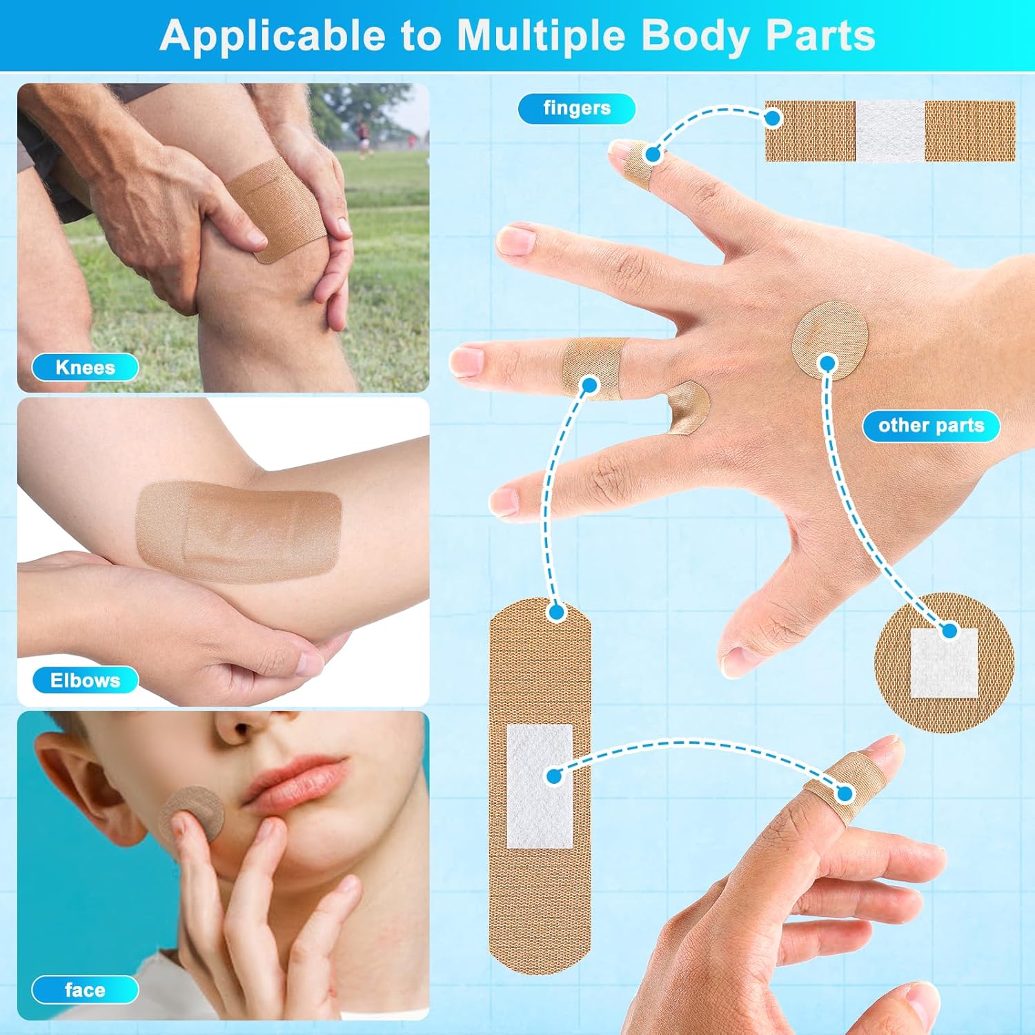- Comfortable & Flexible Fabric: Fabric bandaids made from soft, breathable fabric, these bandages flex with your skin, ensuring they stay secure and comfortable, even in high-movement areas like joints and fingertips.