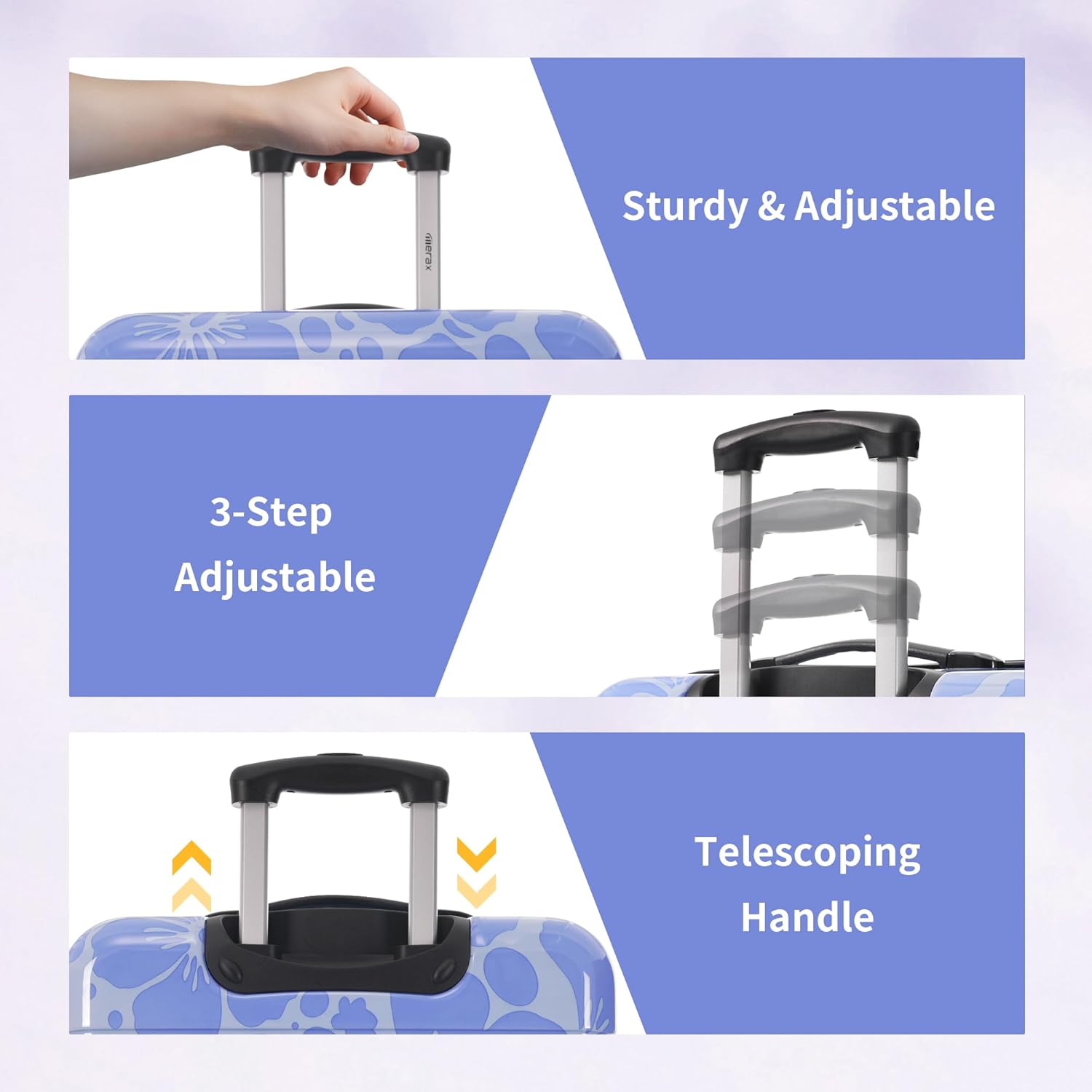 - 3 Piece Set:The set includes 20 inches, 24 inches and 28 inches. One set just satisfies all your different travelling needs.The printed suitcase is very summery and will turn you into a fashion expert in seconds.