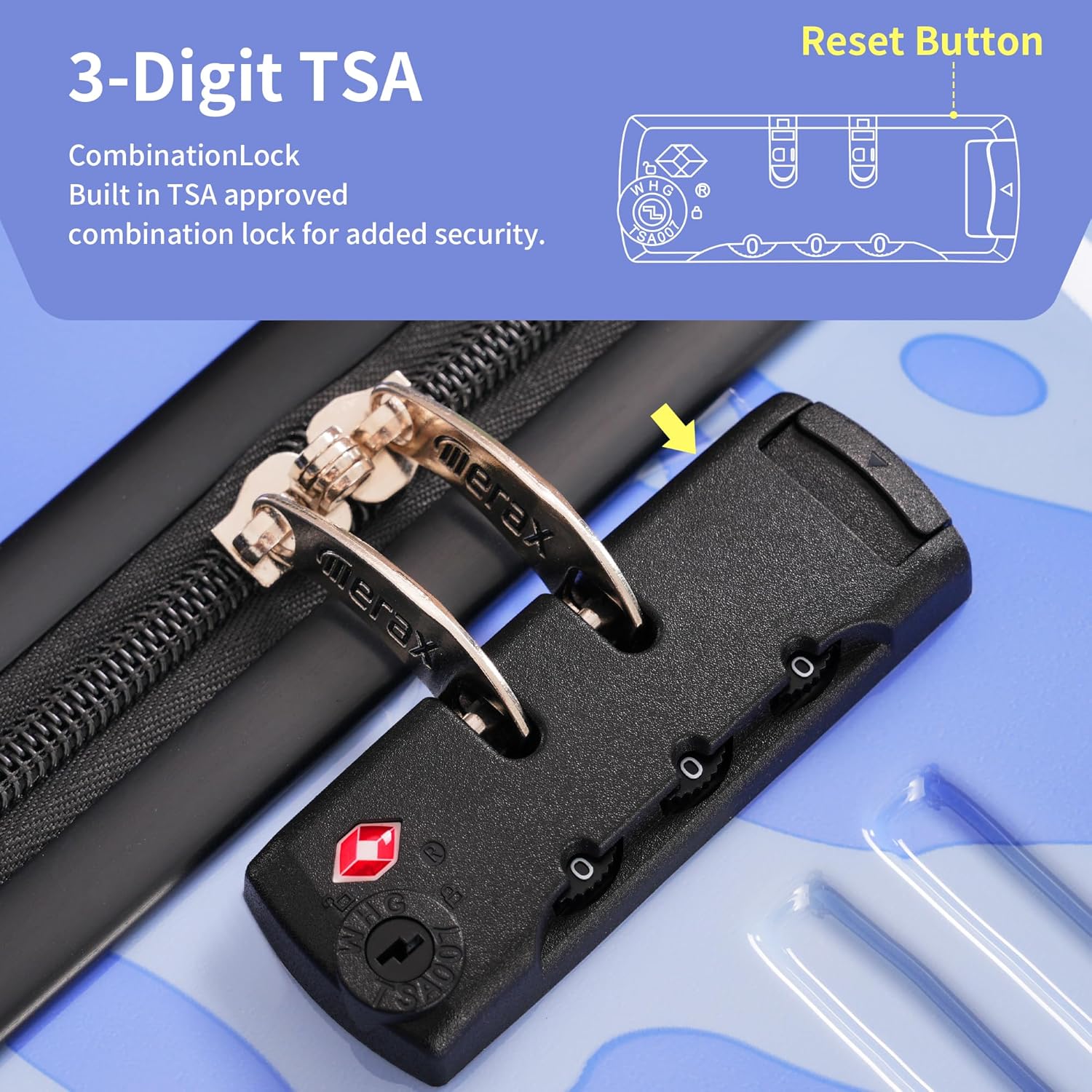 - Safe:Side mounted TSA lock which allows only TSA agents to inspect your suitcase sets without damaging the lock. Zippers are not easy to be pierced by sharp tools, that protects your stuffs in luggage and privacy more better.