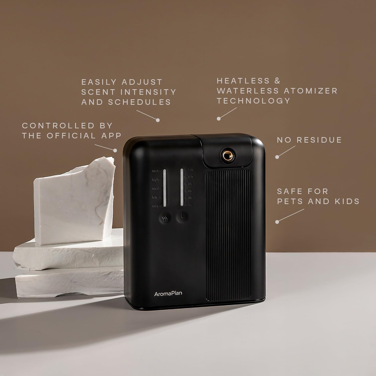 AromaPlan 5 Star Collection Cold Air Scent Diffuser, Whole House (Includes 2 Fragrances & 12 Set Sample kit) - Smart Scent Diffuser, HVAC System- Touch & App, 2000 Sq. Ft Cov. (Black)