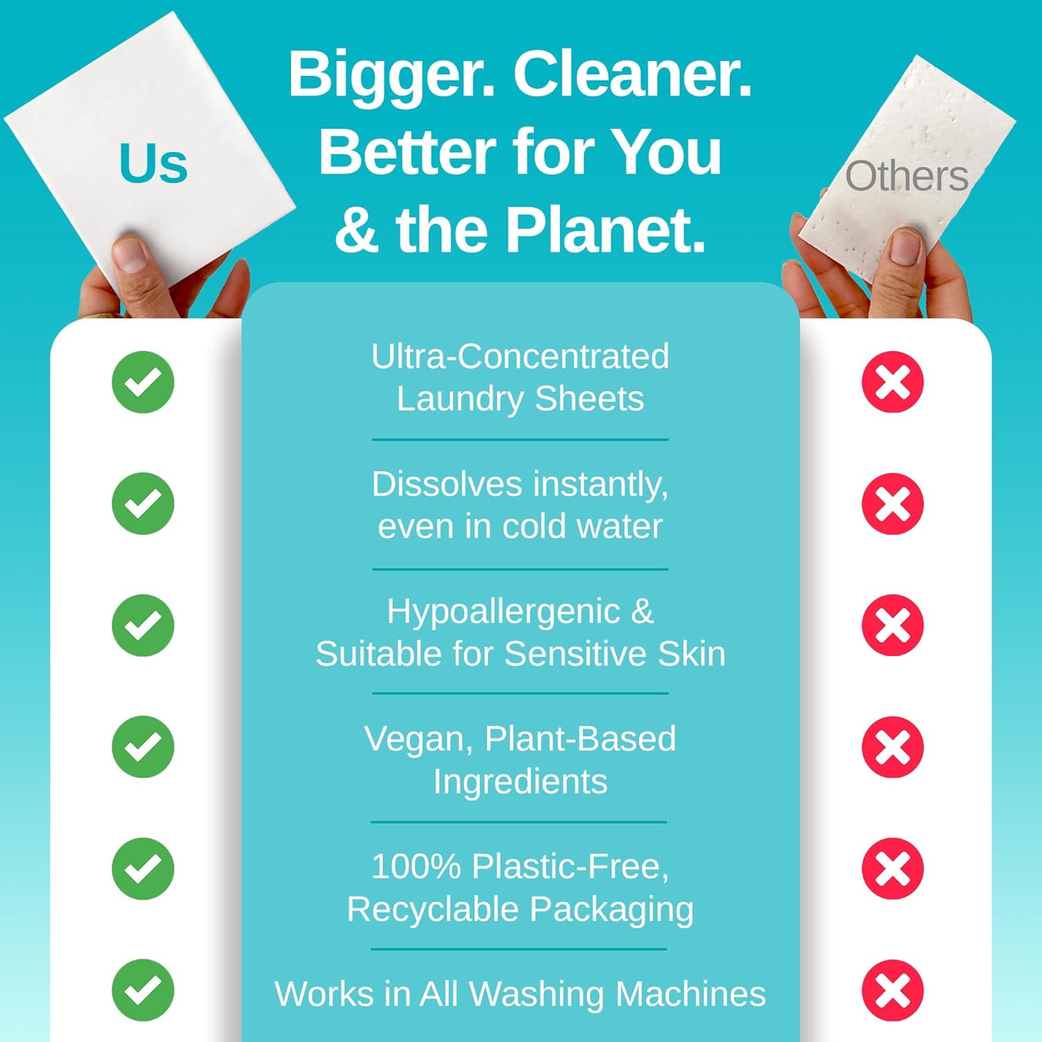 - Naturally Gentle, Powerfully Clean - Our laundry sheets detergent provides a powerful clean without harsh additives—perfect for sensitive skin, or anyone who prefers a natural wash.