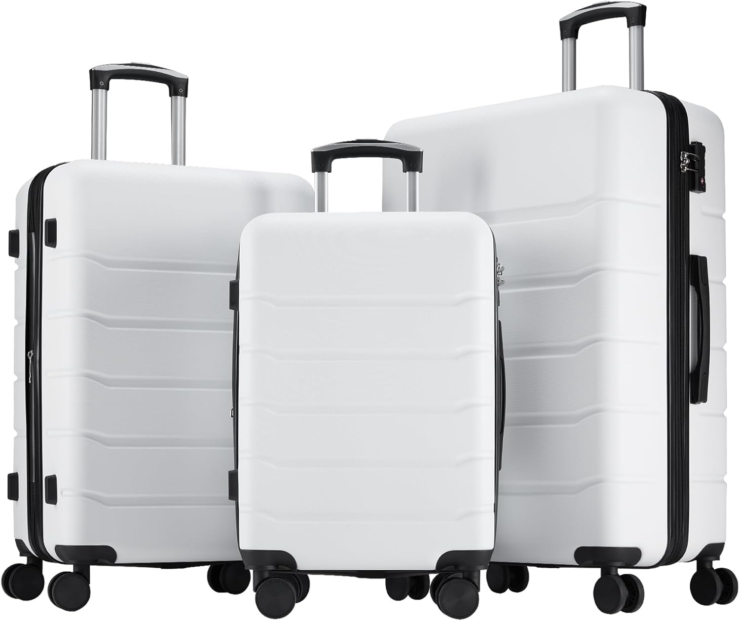 Sweetcrispy Luggage Spinner Wheels Lightweight Expandable Travel Hard Shell with TSA Lock, Raw White, 3-PCS Set (20/24/28 Inch)