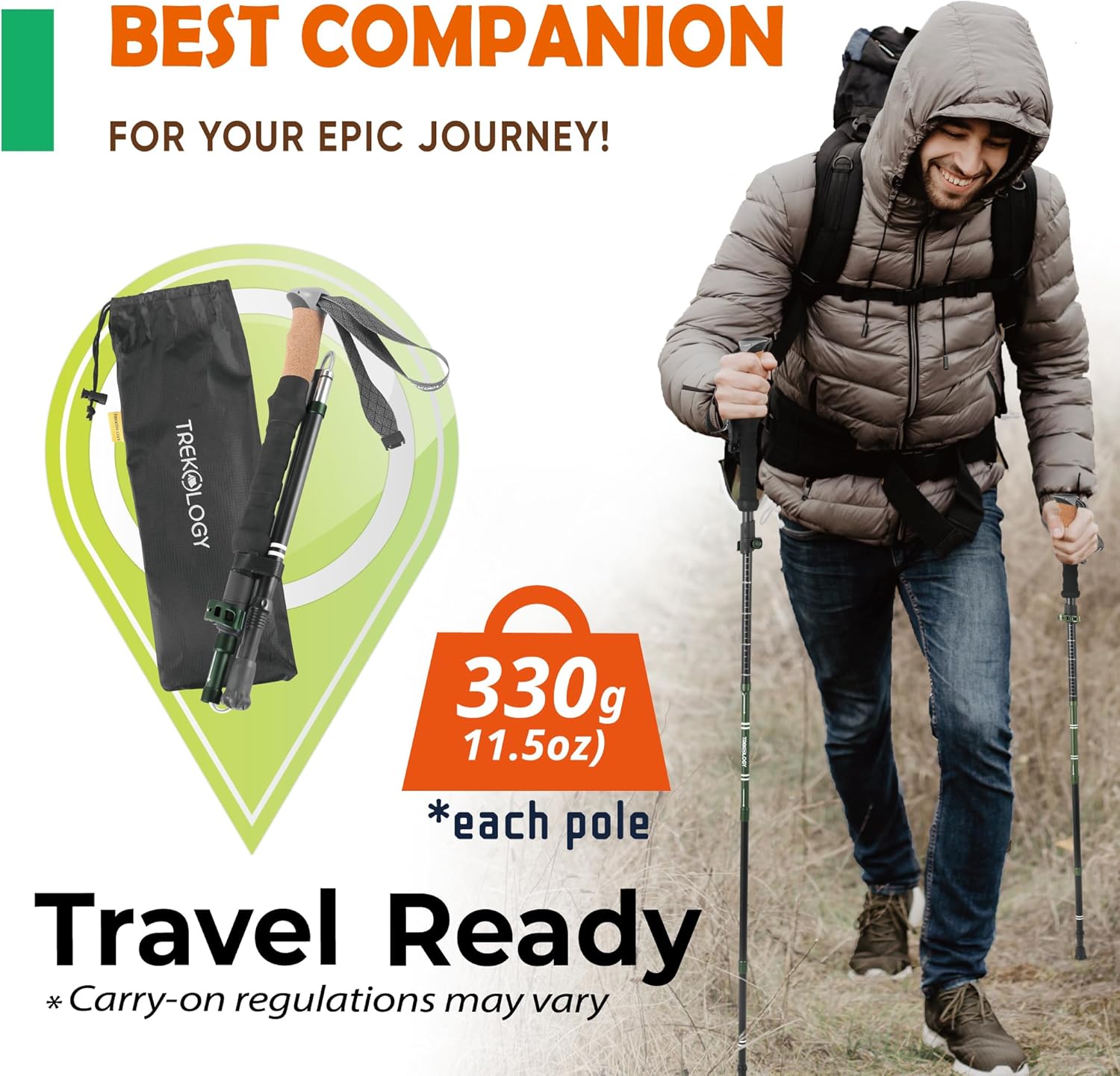 TREKOLOGY Trek-Z Cork Grip Trekking Poles – Lightweight Folding Hiking Poles, Adjustable Height, Compact Travel Design, Aircraft-Grade Aluminum Walking Sticks for Men & Women
