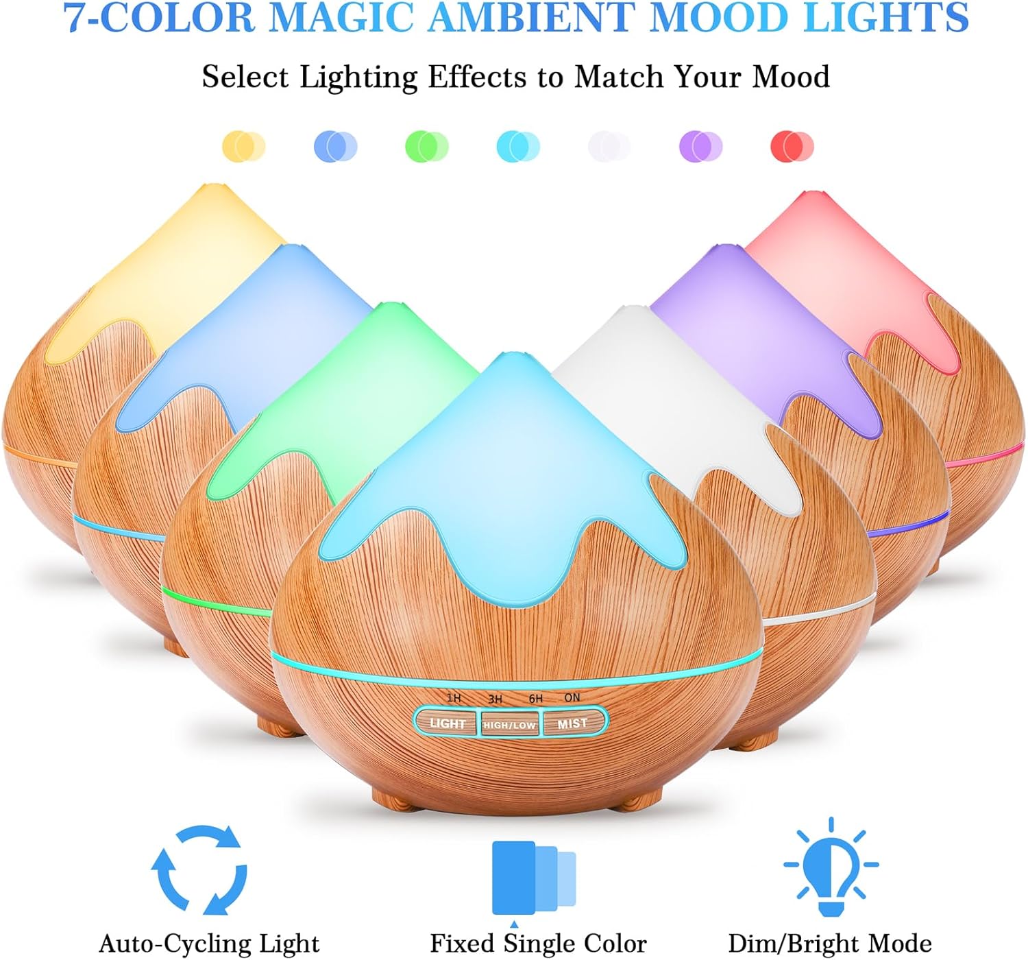 500ML Essential Oil Diffuser, Aromatherapy Diffuser with Remote Control, Multifunctional Air Diffusers for Home Office Room, Fragrance Aroma Diffuser with 7 Color LED & 2 Mist Mode, Light Brown