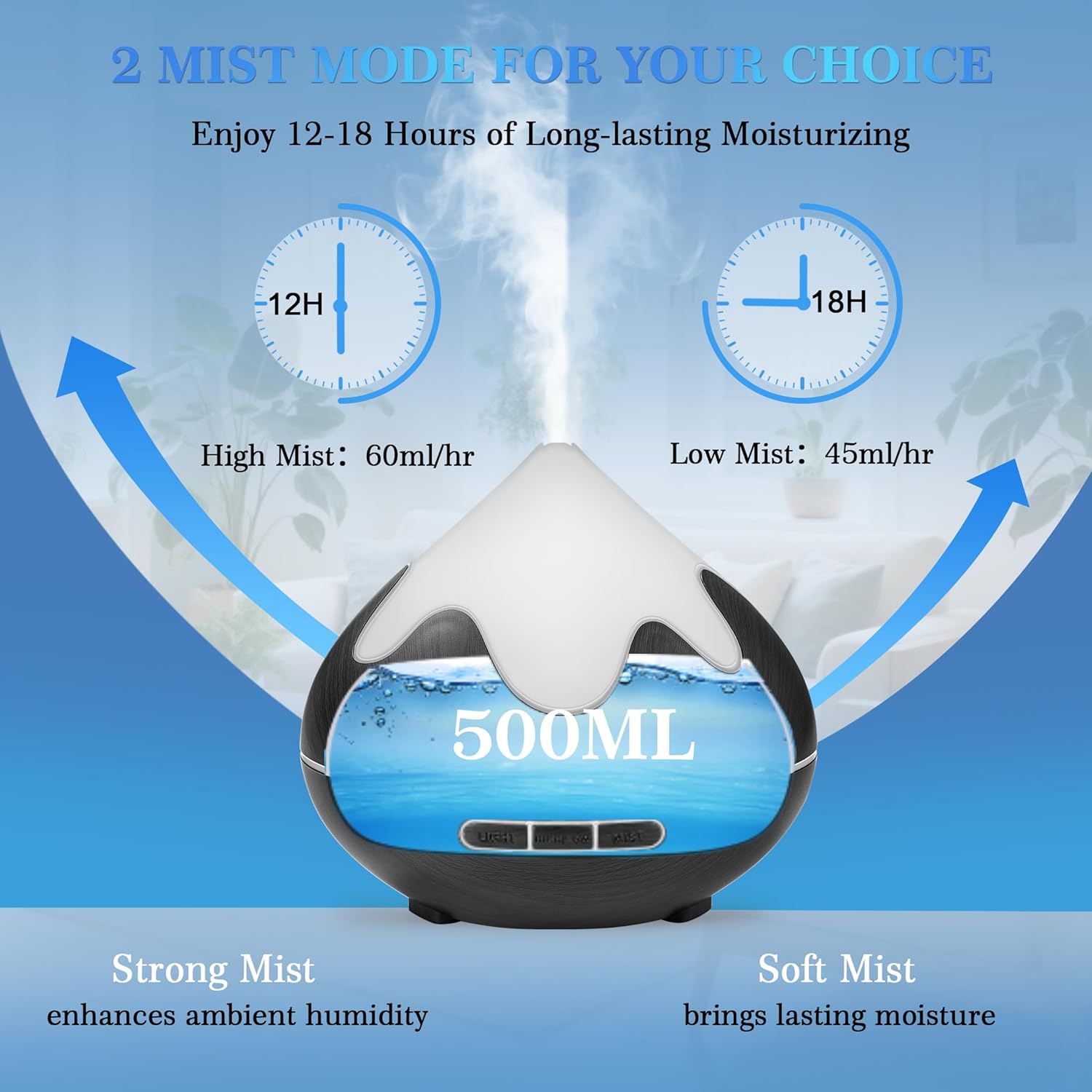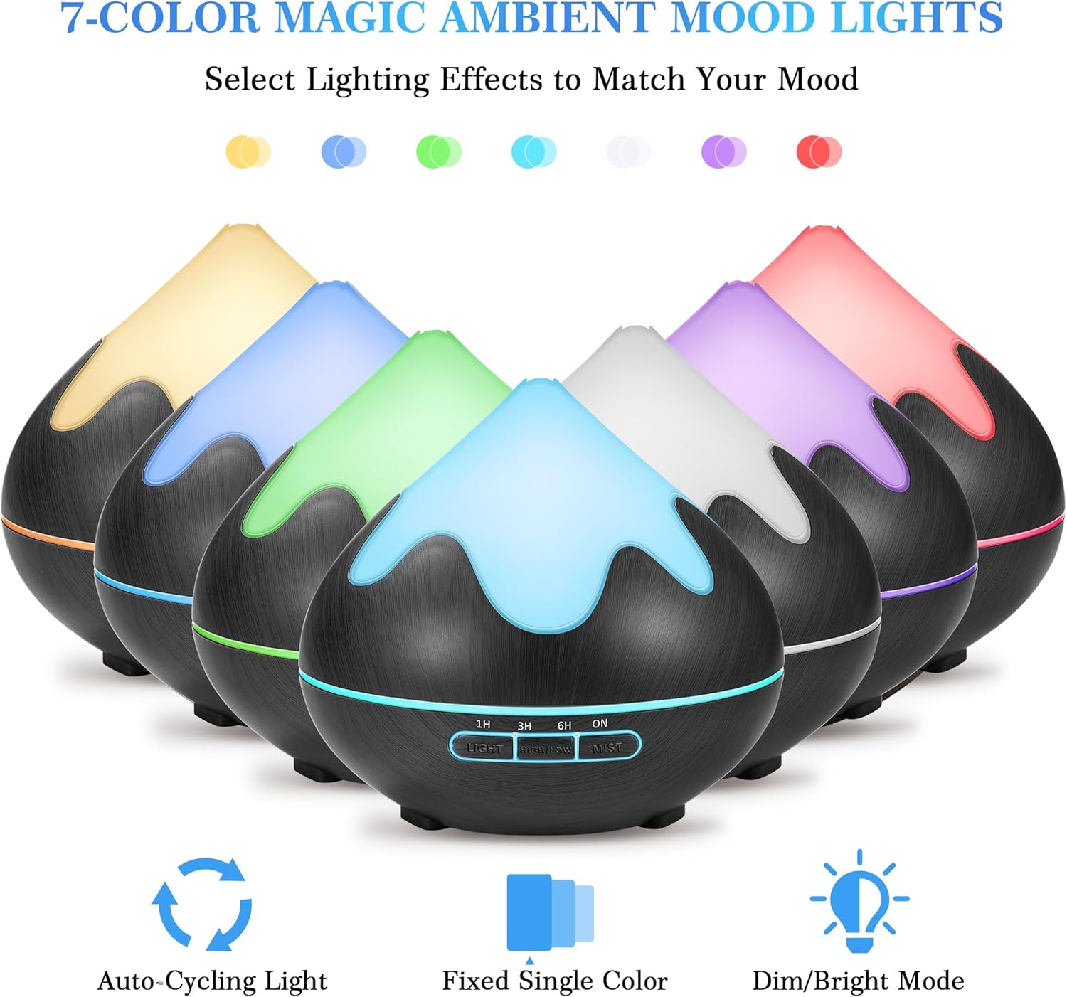500ML Essential Oil Diffuser, Aromatherapy Diffuser with Remote Control, Multifunctional Air Diffusers for Home Office Room, Fragrance Aroma Diffuser with 7 Color LED & 2 Mist Mode, Black
