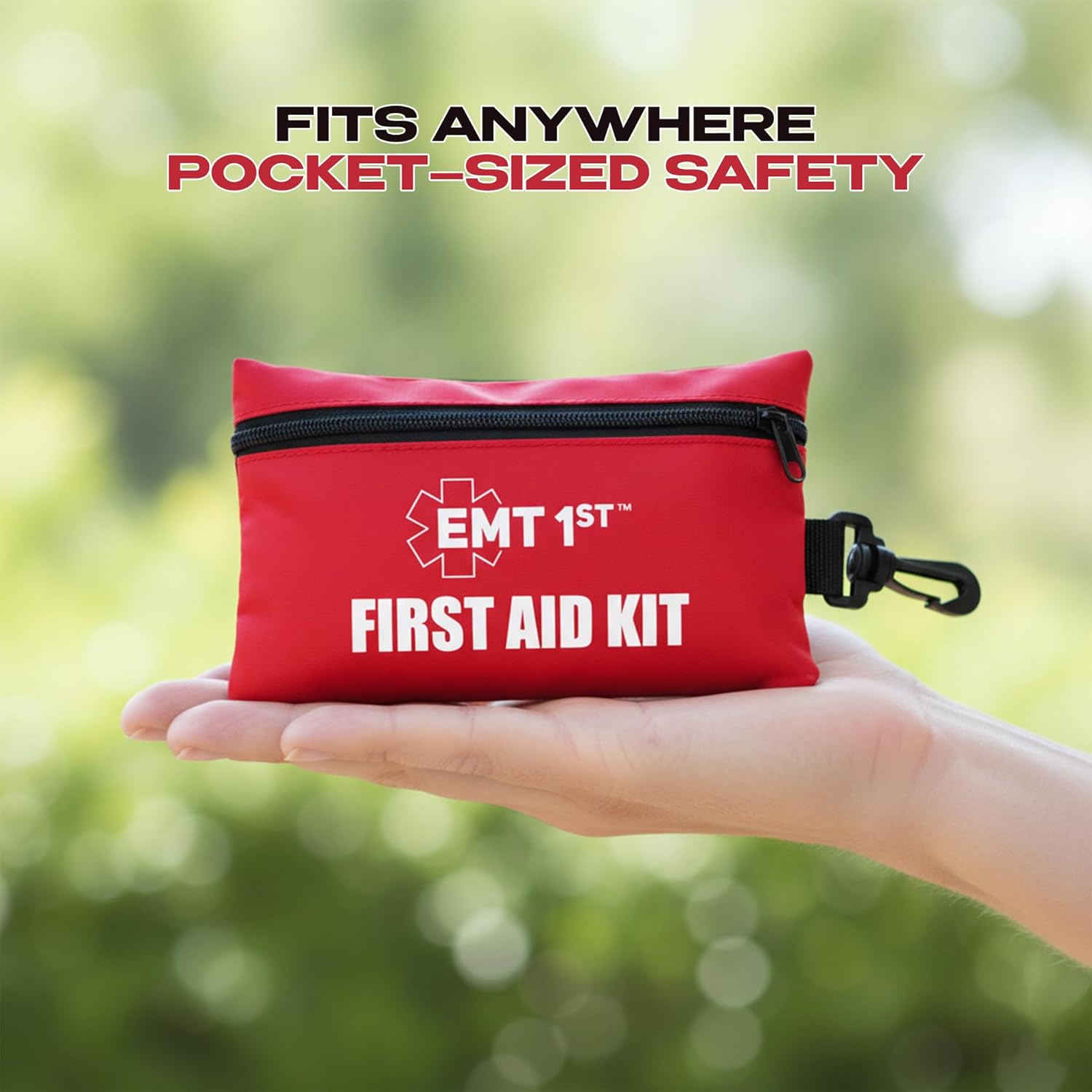 EMT 1st 73 Pcs Emergency Responder Mini First Aid Kit Pouch with 23 Unique Items & Emergency Blanket,First Aid Kit for car, Travel & Home - Emergency Bag for Hiking, Camping, Backpacking and Outdoor