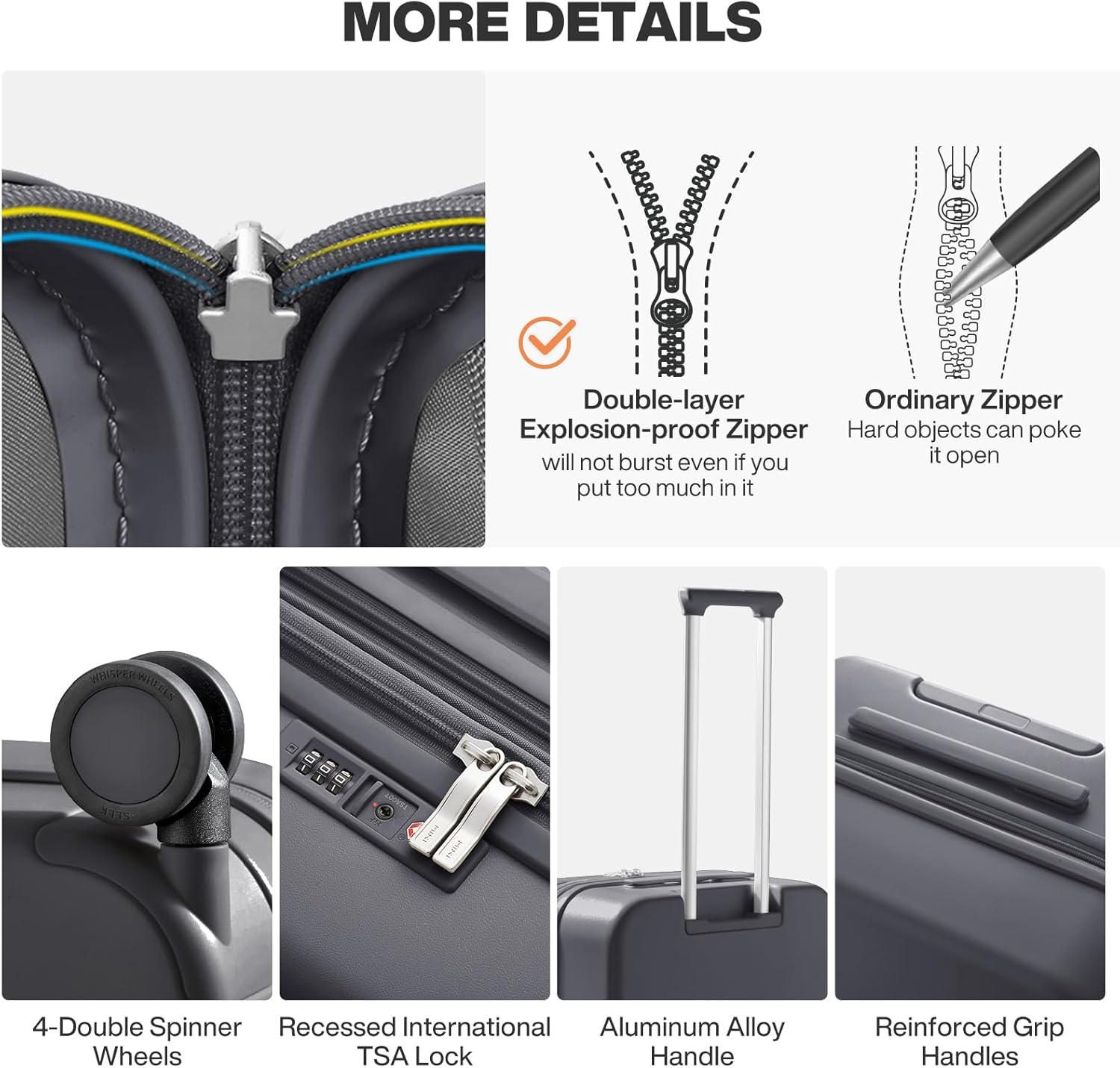 - Anti-Burst Zippers: Our expandable luggage features a Double-Layer Anti-Burst Zipper design which meets standards for increased durability. Carry everything you need with confidence during trips