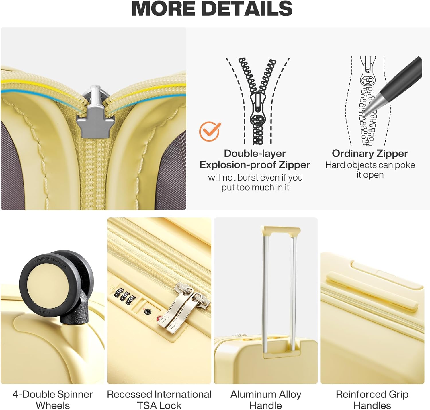 - High-end Quality: Designed to withstand wear and tear without compromising on quality or appearance, our spinner luggage features a durable THREE-LAYER Covestro PC material and the handles with soft rubber hand grips for added comfort
