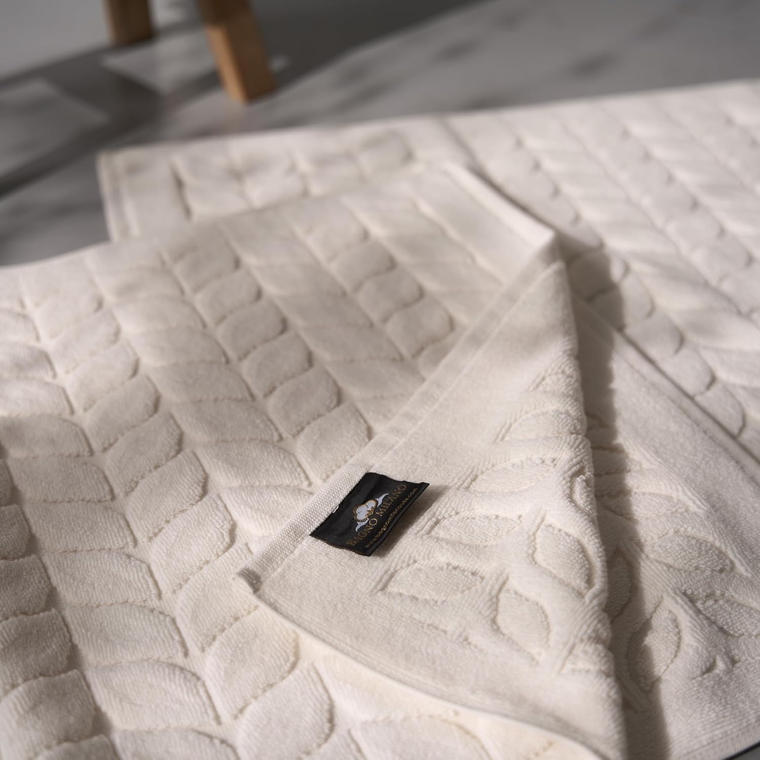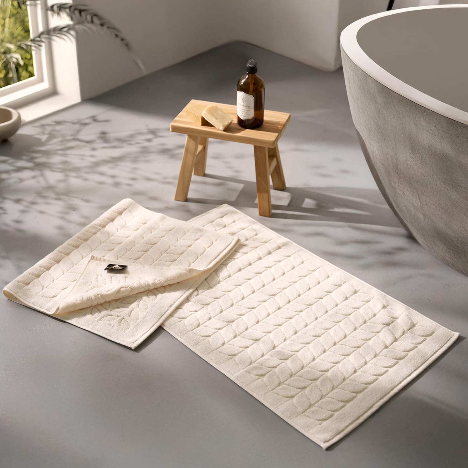 BAGNO MILANO Turkish Bath Towels, Soft Plush Jacquard Luxury Bath Towels, Quick Dry Towel Set (Cream, 2 Pcs Bathmat Set)