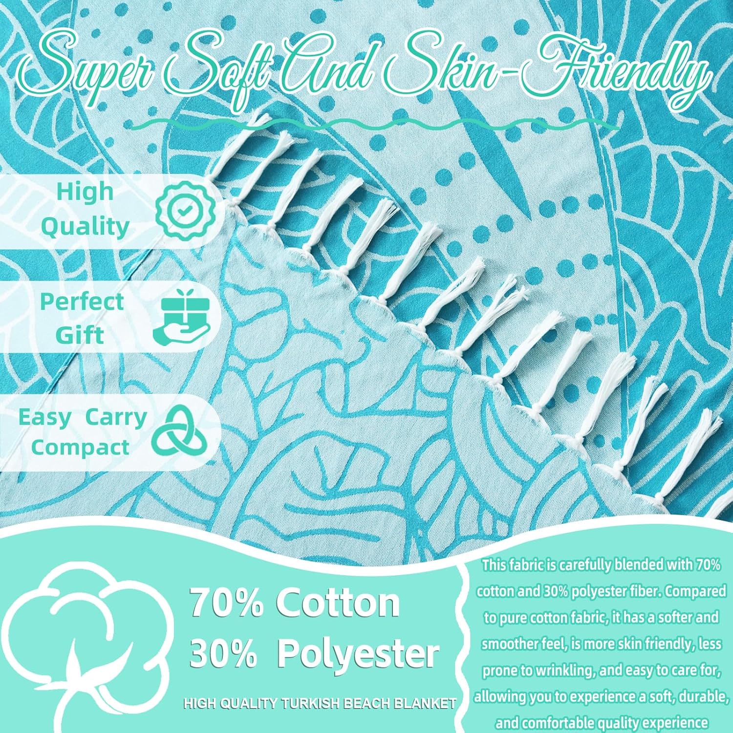 - OVERSIZED and COMPACT : Upgrade your beach game with our Türkiye Cotton Blanket Beach Towel, a whopping 71 x 79 inch of pure comfort. Perfect for family beach days or cozy couple camping. Easy fold design means more room in your suitcase for fun. Grab yours now and make every adventure a plush affair