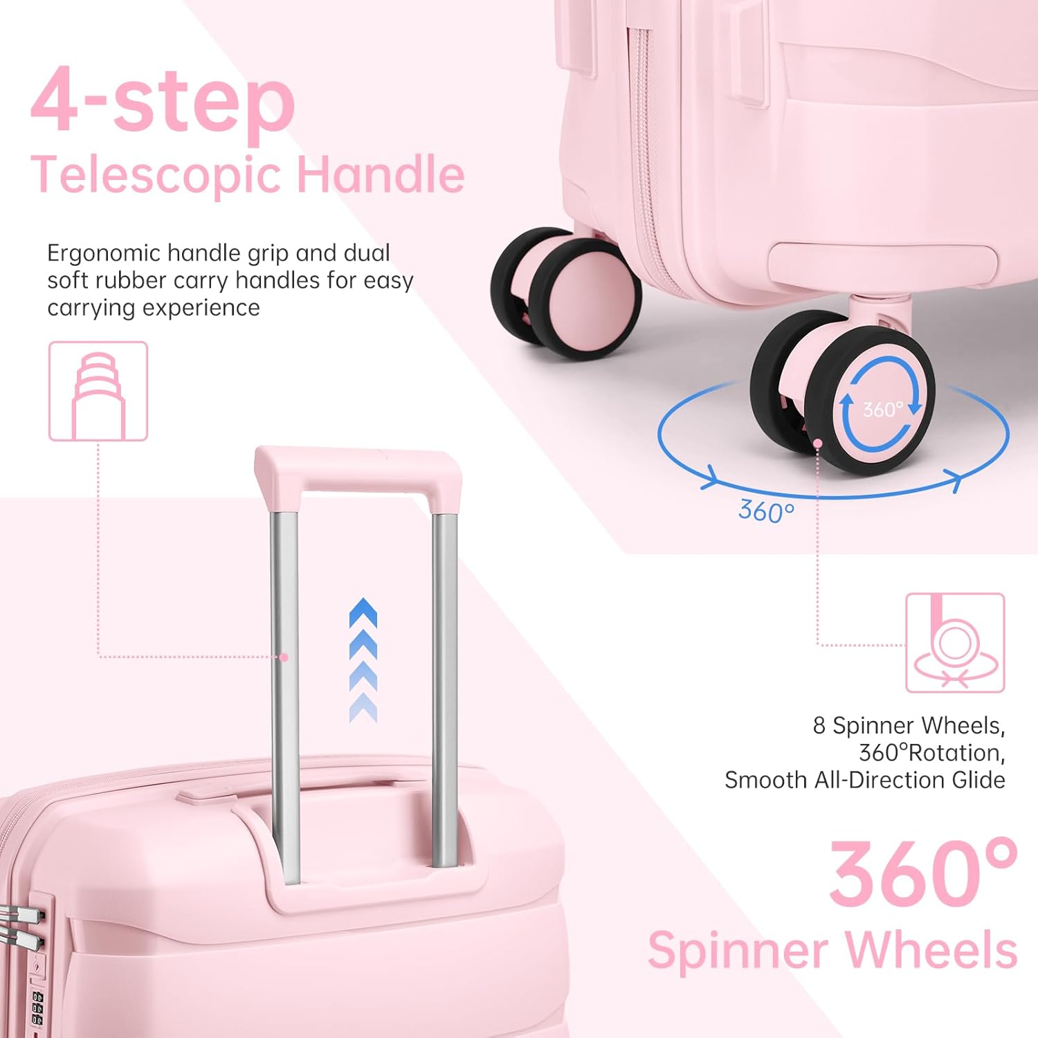 Luggage Sets 5 Pieces, PP Hardshell Suitcase Set with Spinner Wheels, Suitcases for Women (Pink)