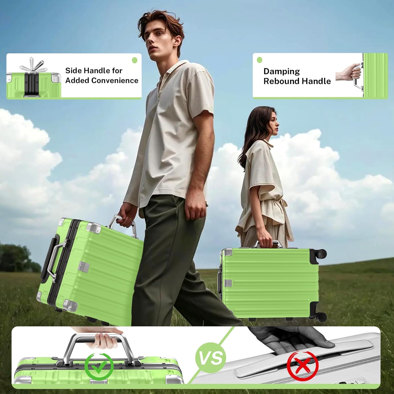 - 【Aluminum Frame Luggage】 Our luggage material include ABS+PC for high quality. PC is durable and strong to protect belongings. 70% Strong (PC) + 30% Light(ABS) makes it lighter, while reinforced aluminum frame provide added durability for demanding travel. The sturdy suitcase protects belongings even with rough handling.