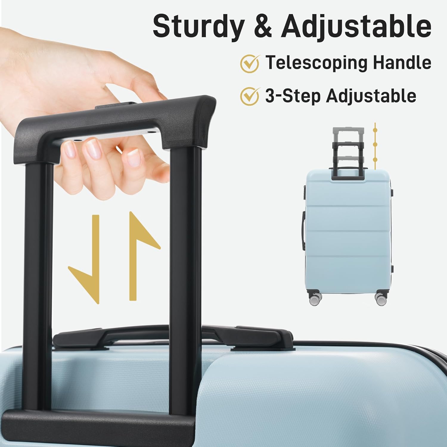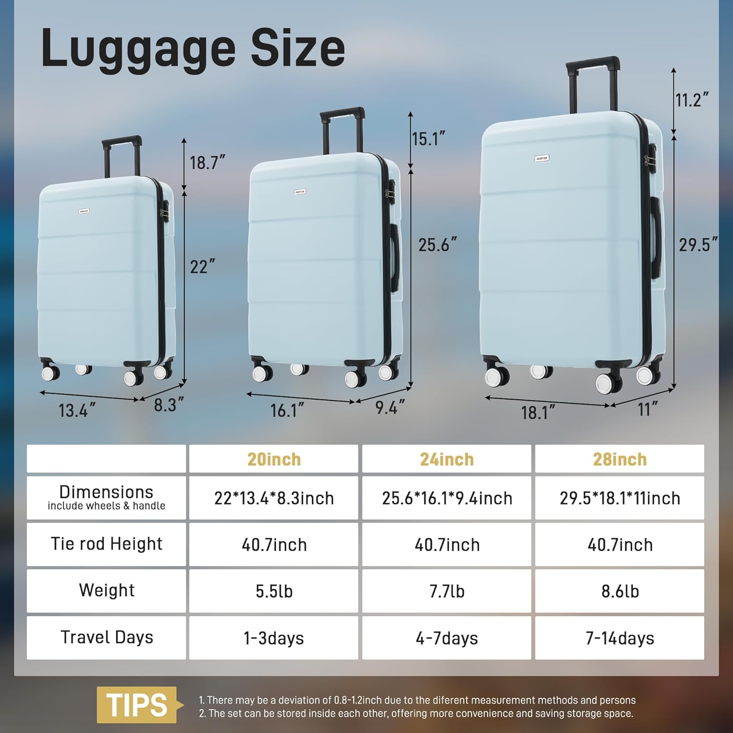 Merax Luggage Sets 3 Piece, Suitcases with Spinner Wheels, Lightweight Travel Luggage with Lock, ABS Hardshell Suitcase Set 20/24/28 IN,Light Blue
