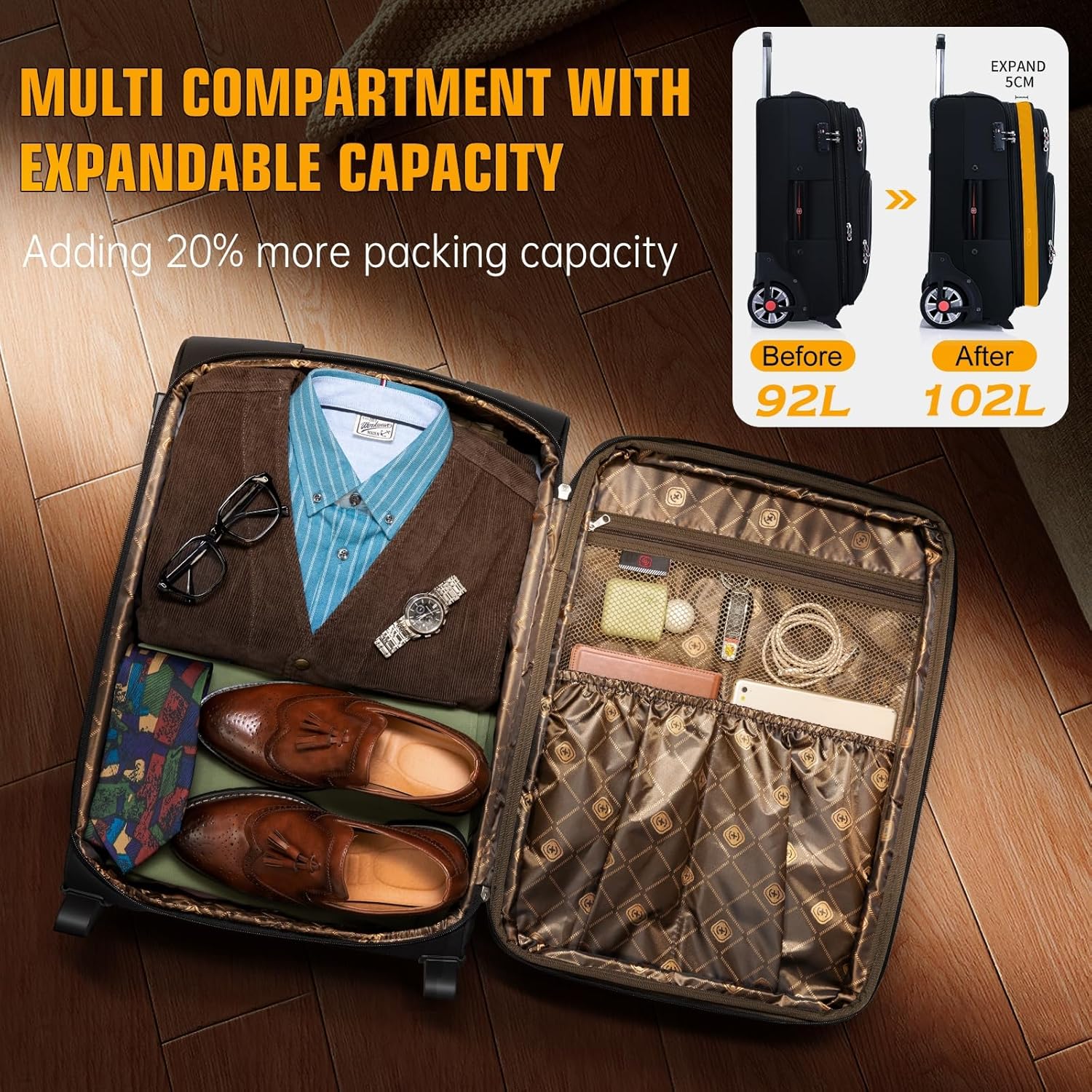 - EXPANDABILITY: The hidden expandable space design of this luggage can increase the expansion capacity by about 20% after expansion, which is equivalent to increasing the capacity of a backpack. With this luggage you can carry anything with ease