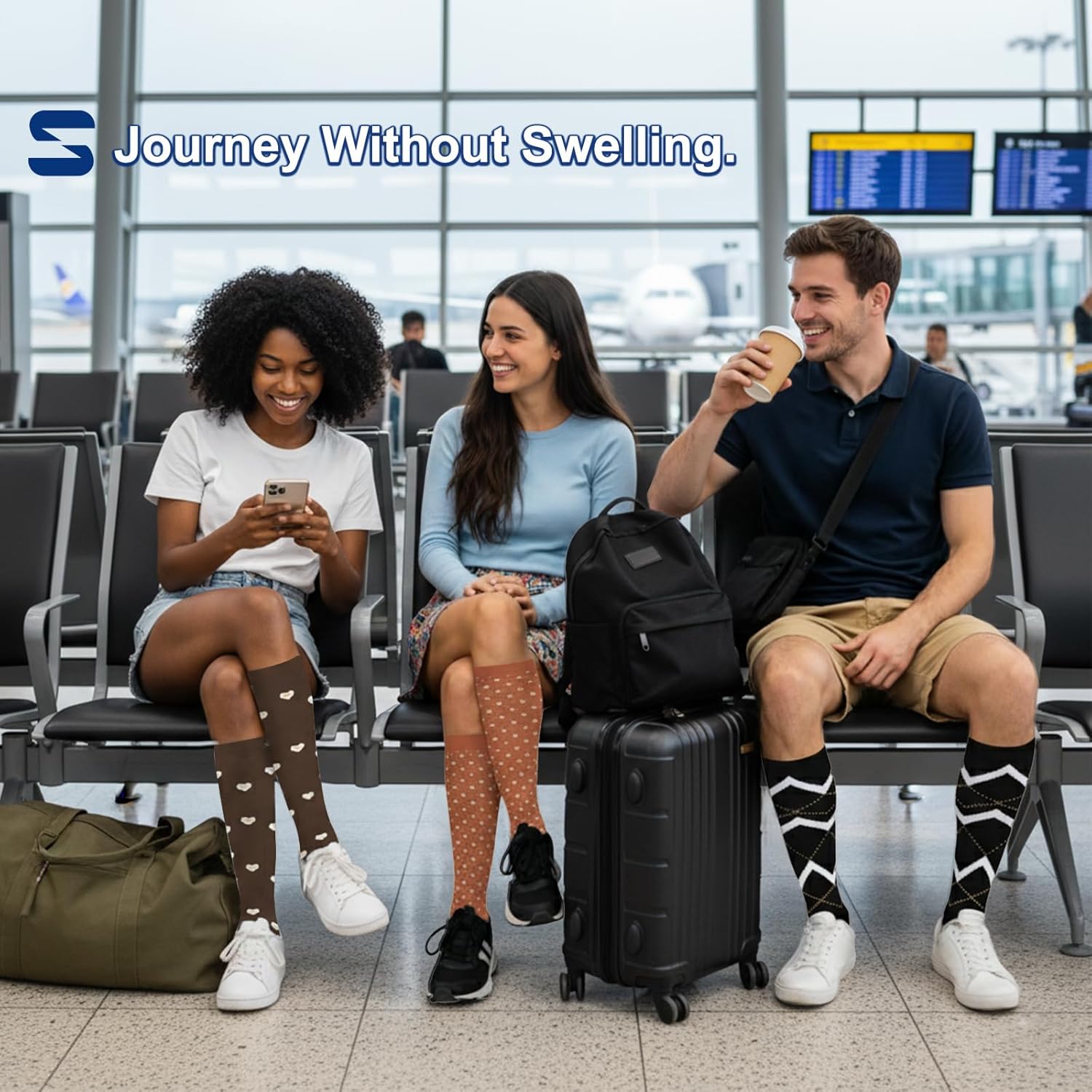 - Comfortable Design - Sooverki graduated compression socks for women and men circulation provide 15-20 mmHg of gradient compression, which are ergonomically designed. Prevention and relief of minor varicose veins, relief of tired aching legs, relief of minor swelling of feet and legs. The inner design of the socks is very soft and friendly to the toes. The material is breathable and comfortable, which can keep your feet dry.