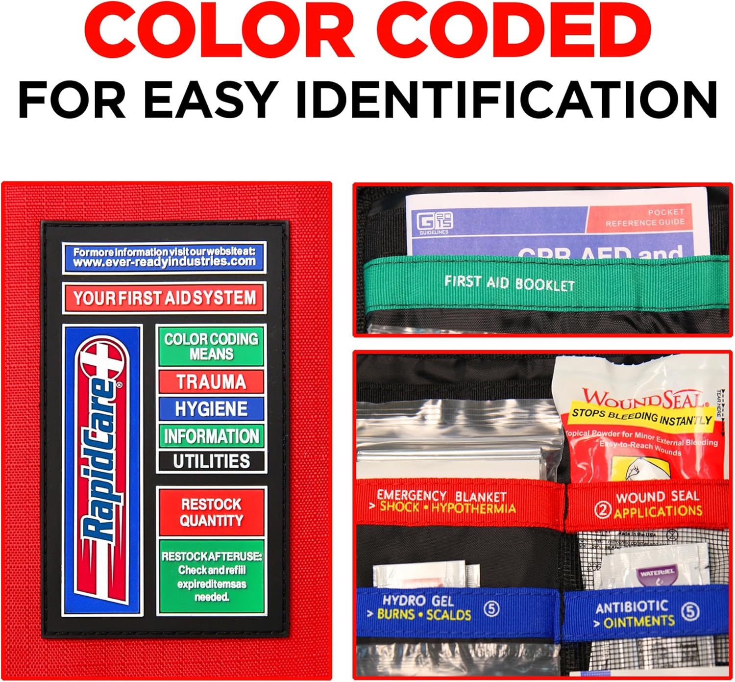 Rapid Care Premium Trauma First Aid Kit for Outdoors, Workplace, and Home - Exceed OSHA Guidelines and ANSI 2009 Standards - 240 Pieces - Includes Bonus Travel Kit