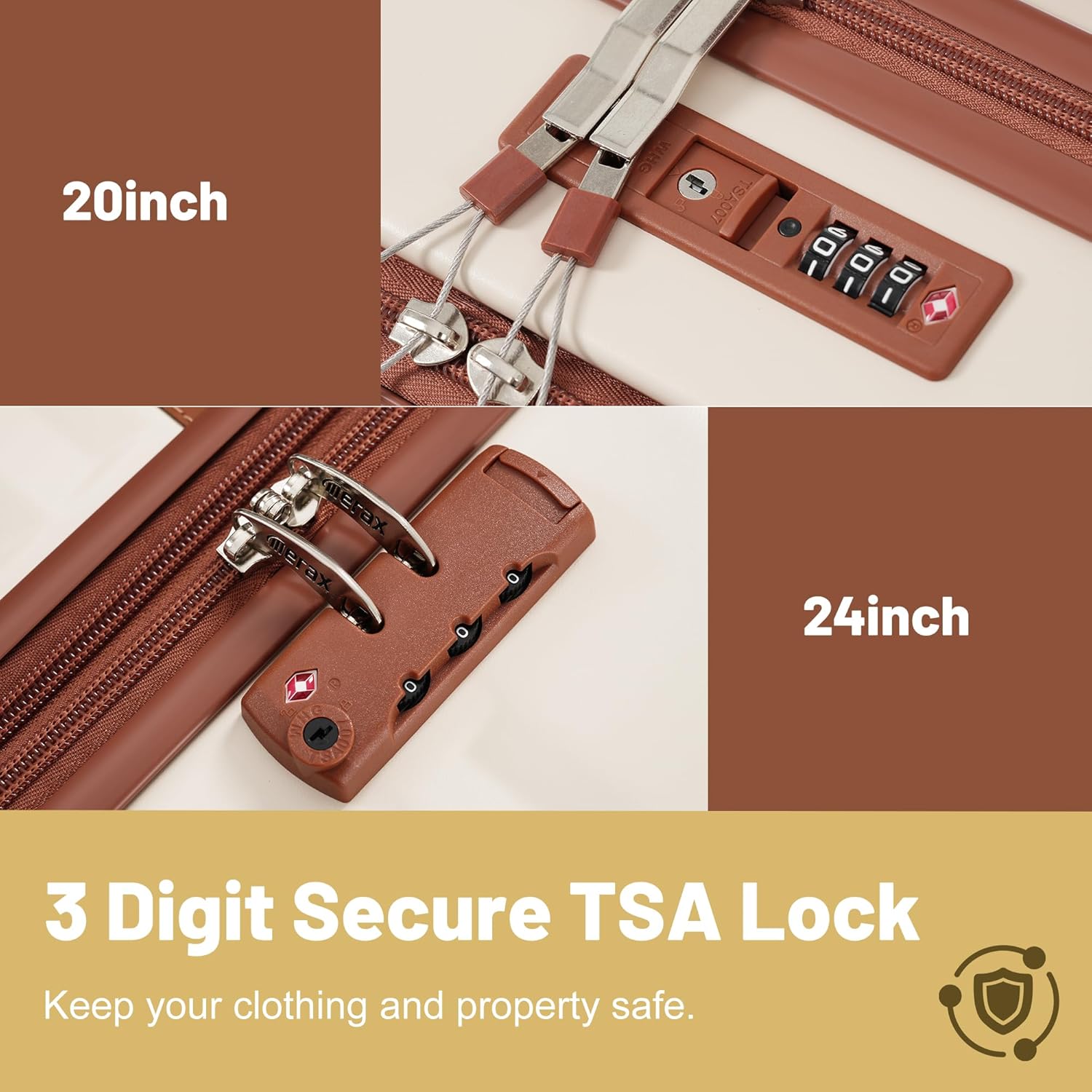 - Safe: Our 3-piece luggage sets are equipped with explosion-proof double zippers, offering an additional storage space. The TSA lock is designed to avoid violent damage to the luggage, which allows only customs agents to inspect your bags without damaging the lock when traveling.