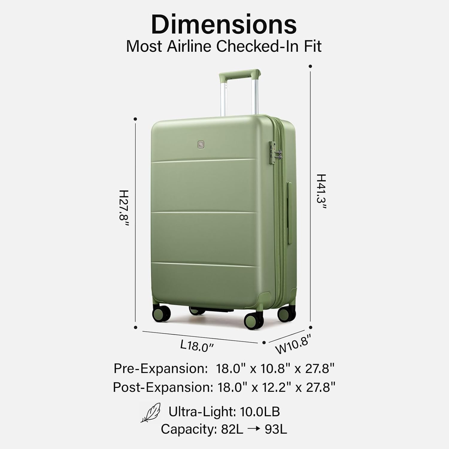 - Dimensions & Capacity: Hanke expandable 26 Inch Luggage measures 18.0 x 10.8 x 27.8" to 18.0 x 12.2 x 27.8" (expanded), with a packing capacity from 82L to 93L. Weighing just 10.0 lbs, this medium checked luggage is ideal for 7–10 day business or leisure trips