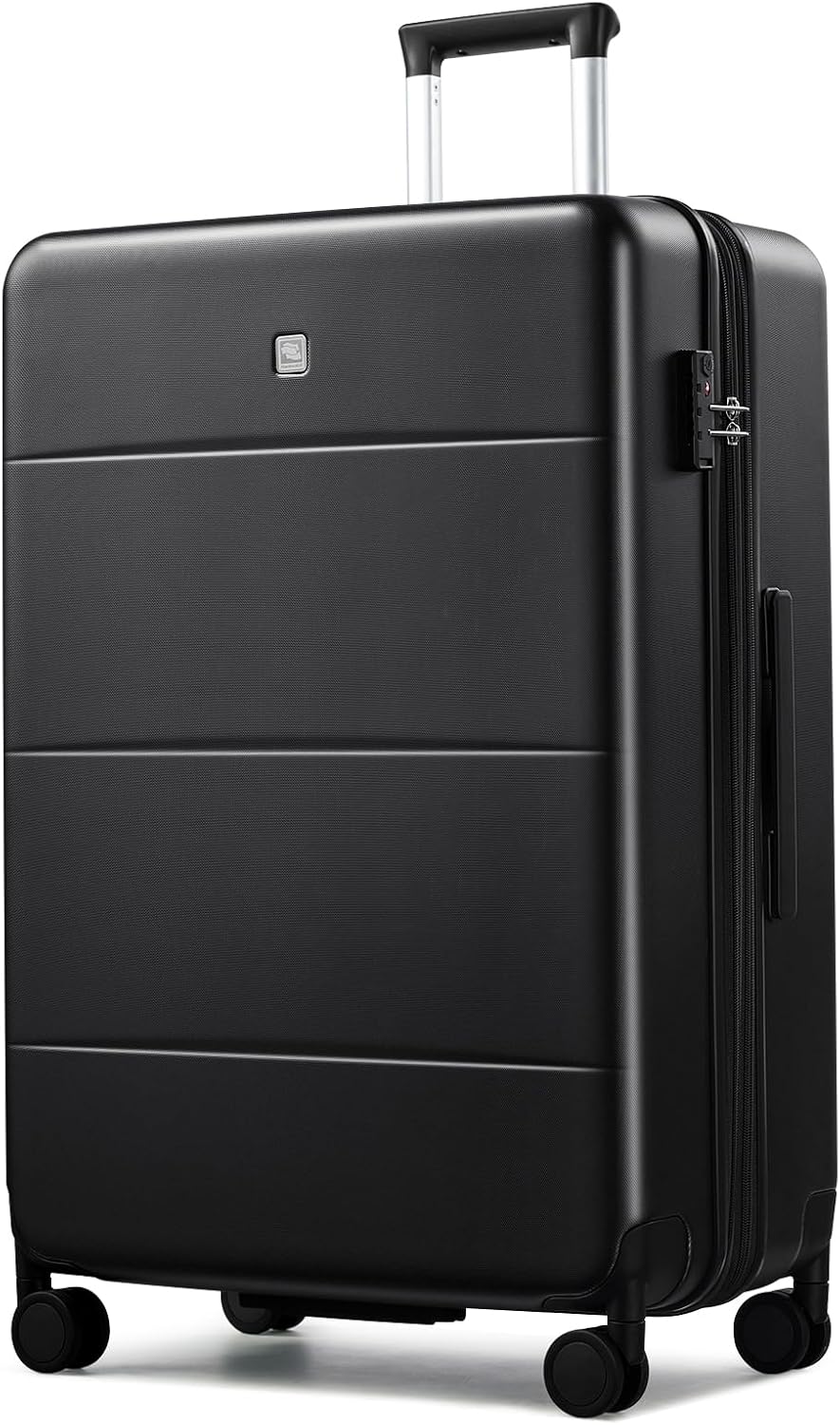 Hanke Expandable 28 Inch Luggage with Spinner Wheels, Hardside Large Suitcase, All-PC Hard Shell Checked Luggage, TSA Lock, Durable Checked-Large (Jet Black, 114L)