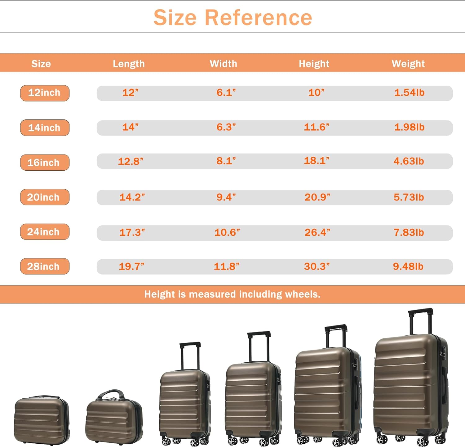 Merax Luggage Set 6 Piece, Hardshell ABS Suitcases with 8 Silent Spinner Wheels, Durable and Lightweight Travel Luggage for Family Trips, Brown