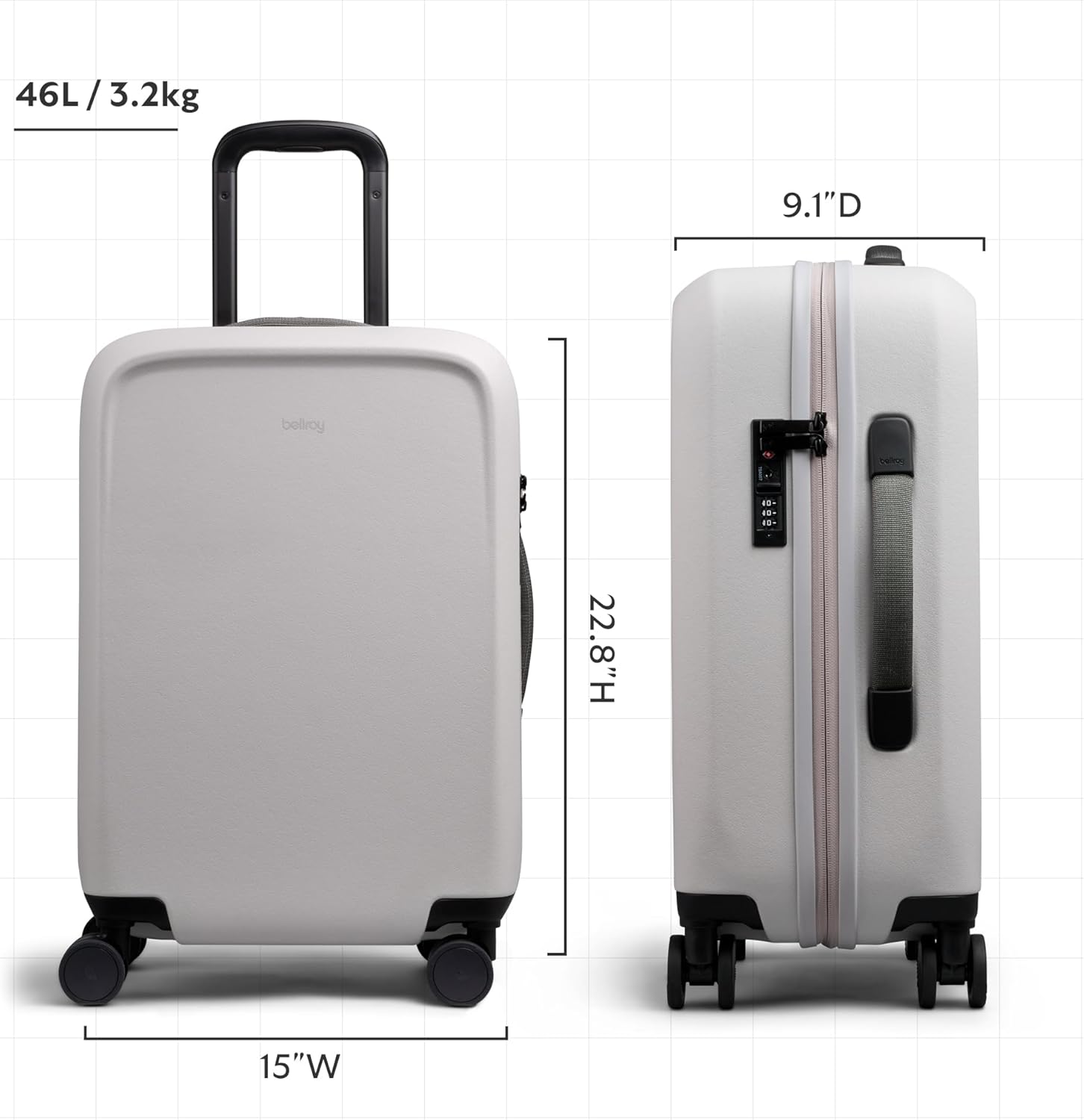 Bellroy Transit Carry-On Plus (46L carry-on luggage, with hard shell and removable packing cells) - Chalk