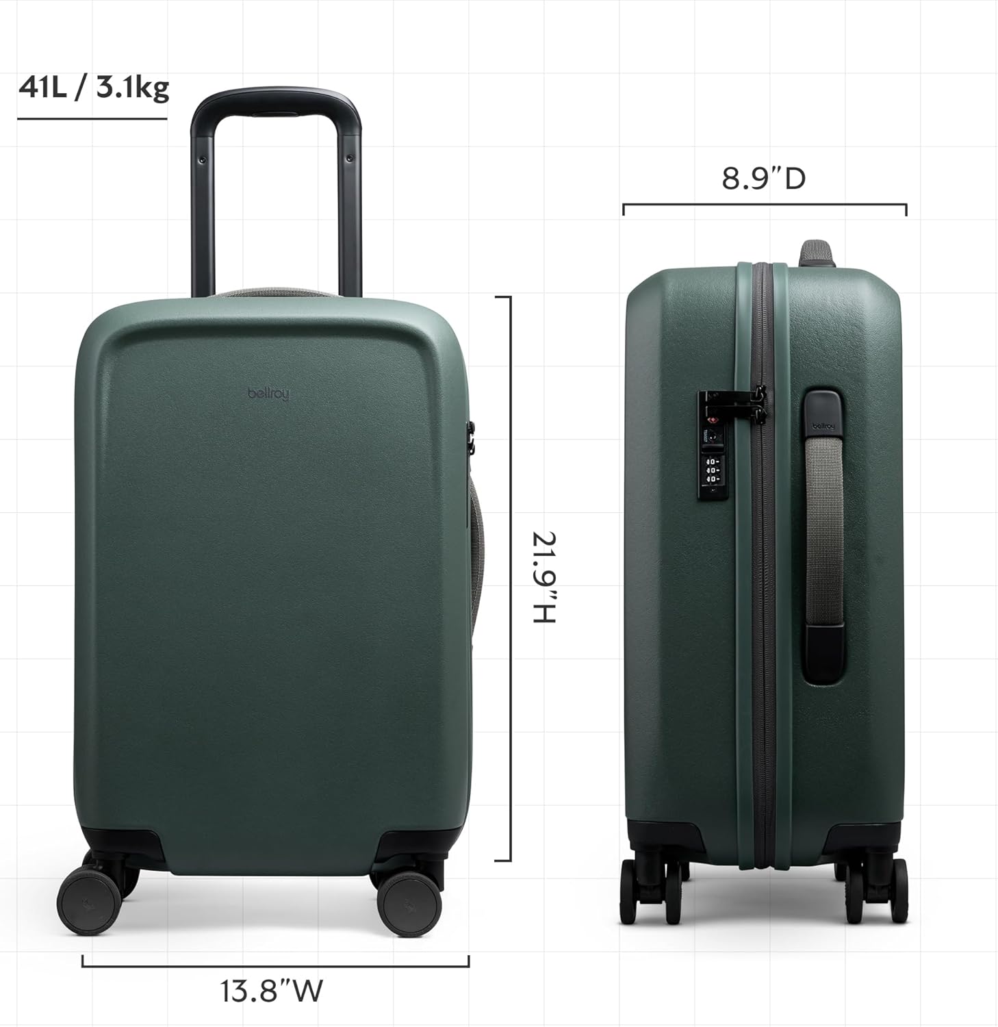 Bellroy Transit Carry-On (41L carry-on luggage, with hard shell and removable packing cells) - Everglade