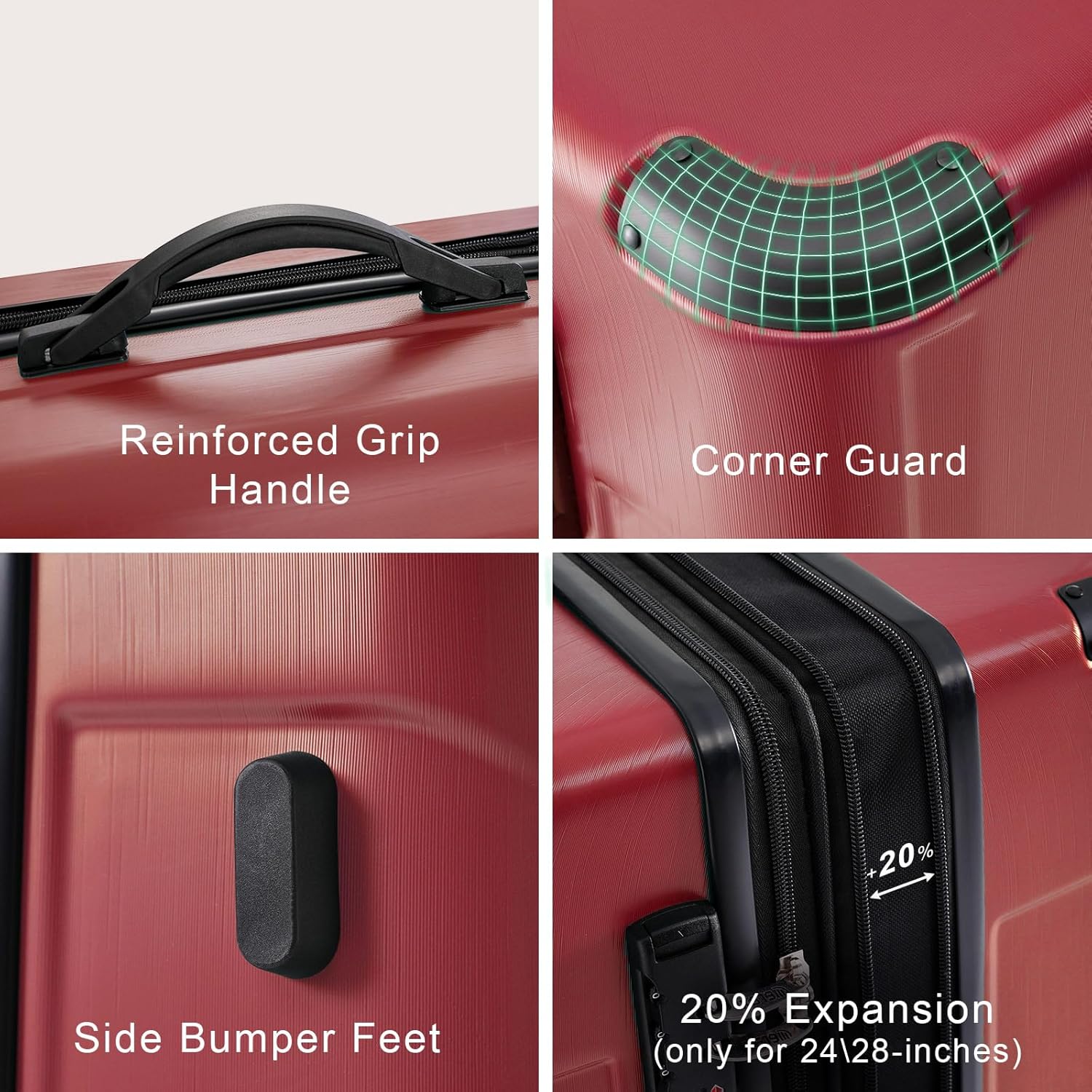 - Expandable Luggage: The 24inch suitcase expands by 20% to provide extra packing space, making it easy to store additional clothes, souvenirs, or travel essentials. When needed, simply unzip the expansion zipper for extra room.