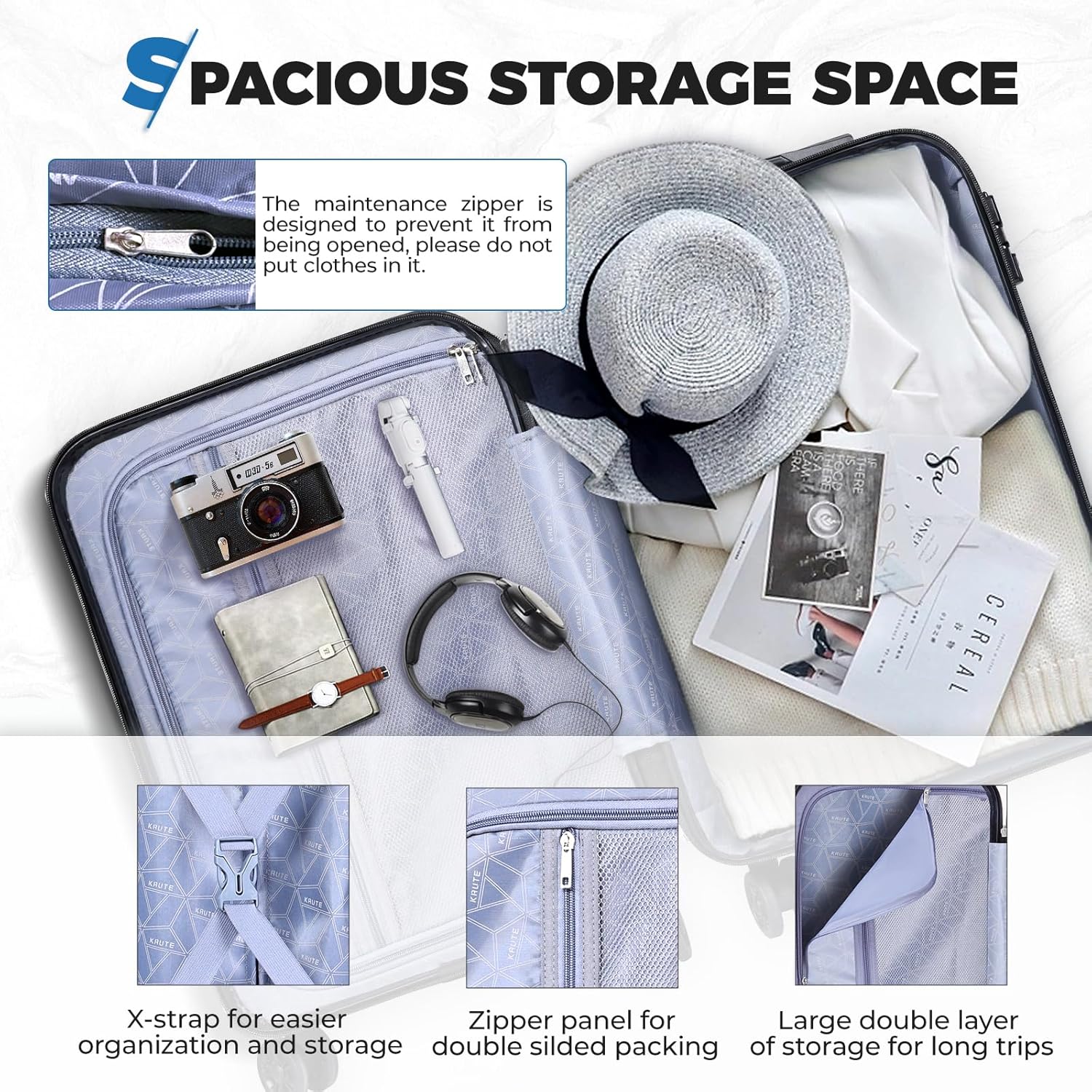 Krute Suitcases with Wheels Checked Luggage 24 Inch Lightweight PC ABS TSA Lock Hard Side Travel Suitcase