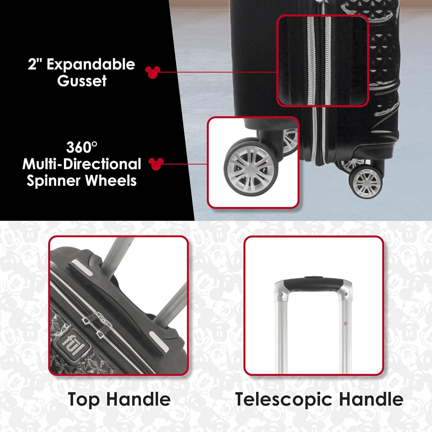 FUL Disney Mickey Mouse 22 Inch Carry On Luggage, Hardshell Rolling Suitcase with Spinner Wheels, Black