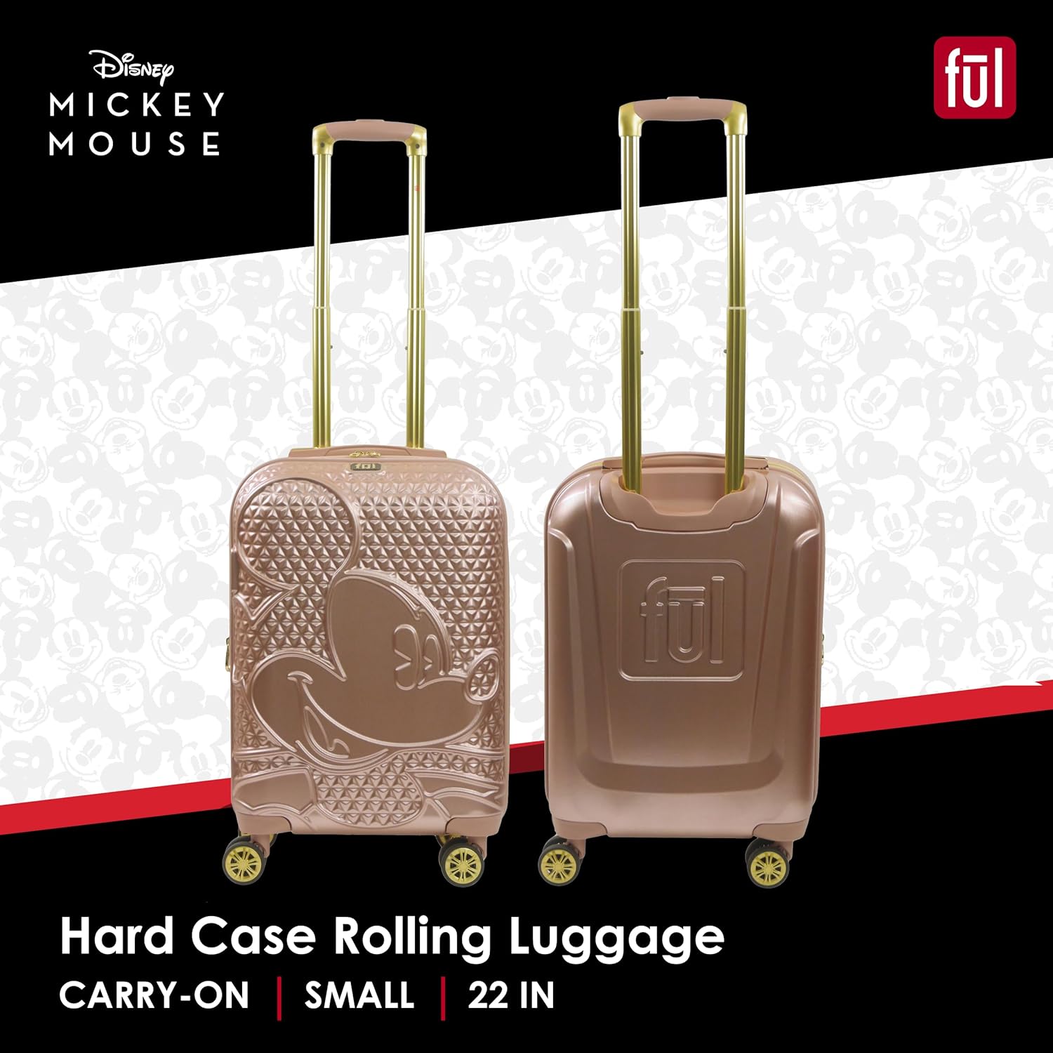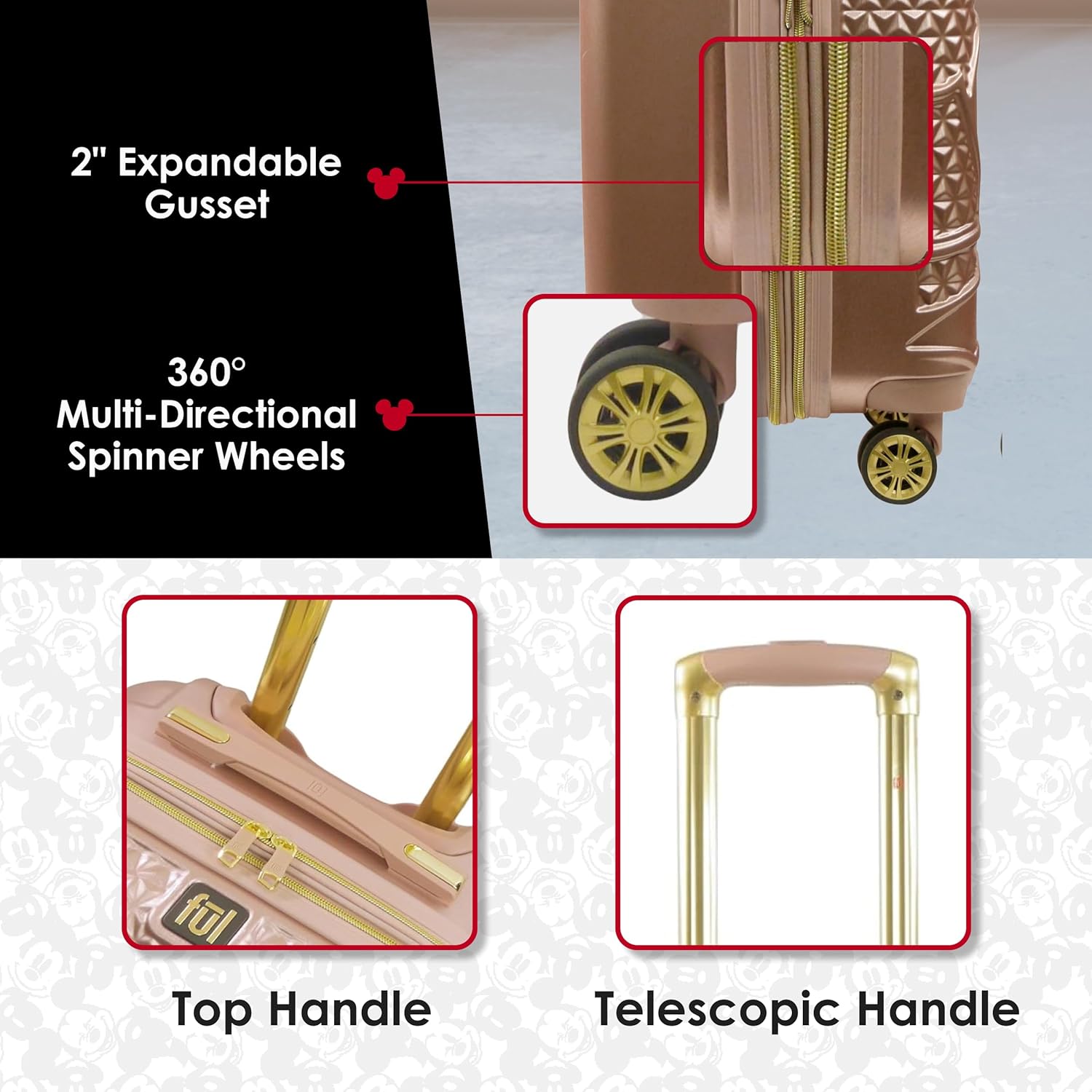 FUL Disney 22 Inch Carry On Luggage, Hardshell Rolling Suitcase with Spinner Wheels, Mickey Mouse-Rose Gold