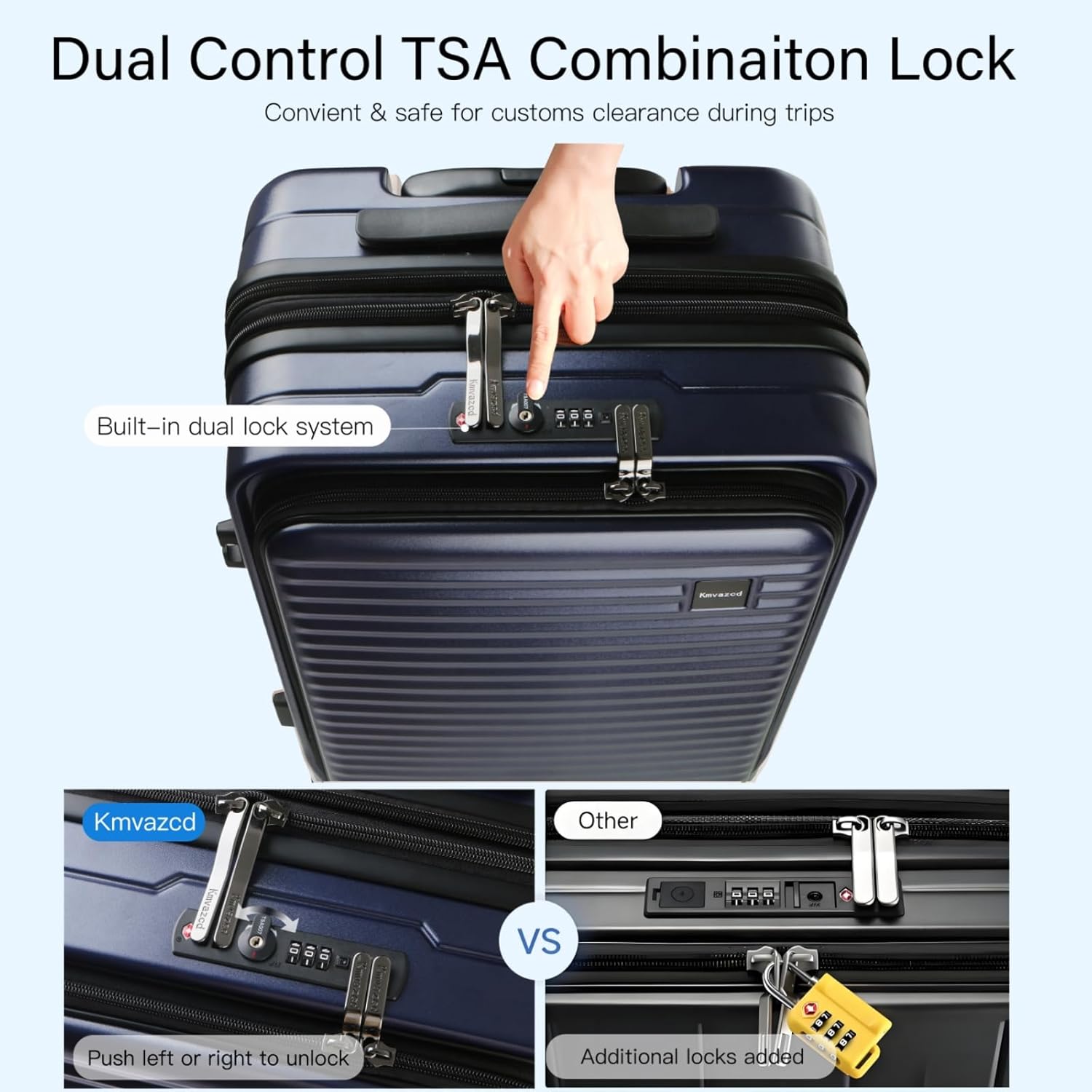 - Smooth and Secure: This wheeled suitcase features four 360° silent swivel wheels, a three-stage telescoping aluminum handle, and a TSA-approved dual-control combination lock. the front pocket compartment and main luggage area lock separately, facilitating customs clearance during travel.