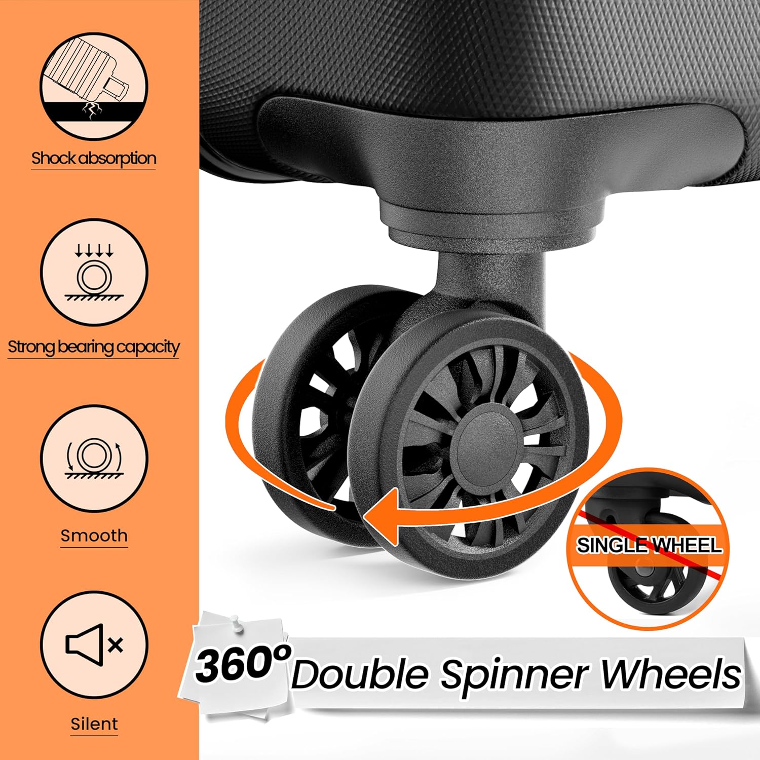 - Smooth & Silent 360° Spinner Wheels: Features 360° silent dual spinner wheels that roll smoothly in all directions—effortless to maneuver through busy airports, train stations, and city streets.