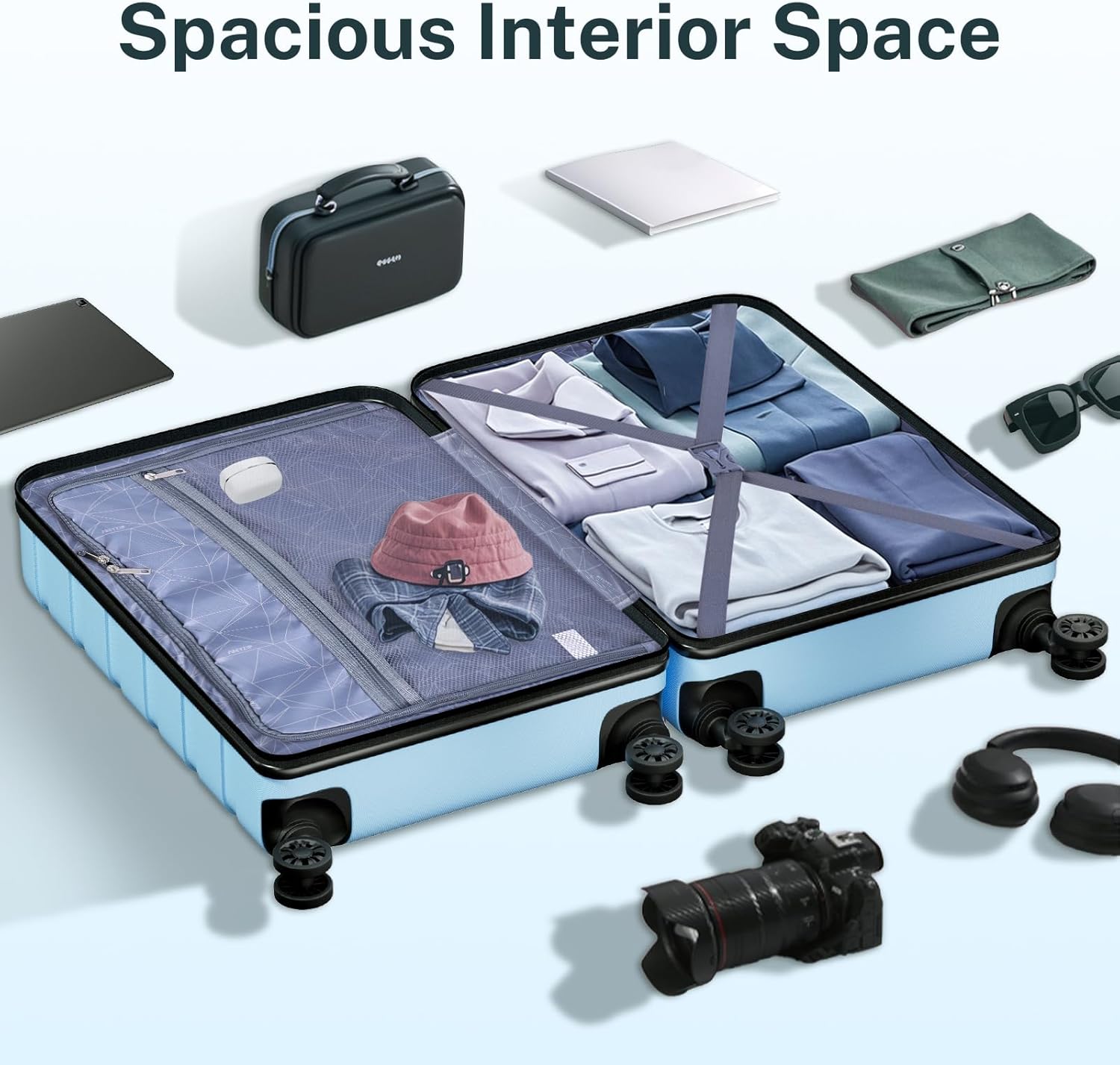 - Lightweight & Durable PC+ABS Shell: Crafted with PC+ABS composite material for an ideal balance of strength and lightness. The textured shell resists impacts and scratches, keeping your suitcase looking great trip after trip.