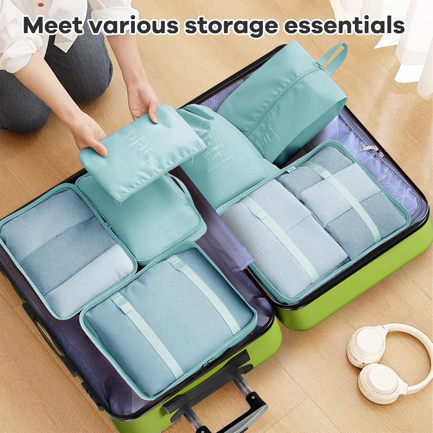 - 3-Piece Luggage Set + 7 Storage Bags for Ultimate Organization: This 3-piece luggage set includes 20", 24", and 28" suitcases, perfect for various travel needs. The set comes with 7 storage bags (laundry bag, shoe bag, lingerie bag, toiletry bag, cosmetic bag, and more) to keep your items organized and neatly packed.