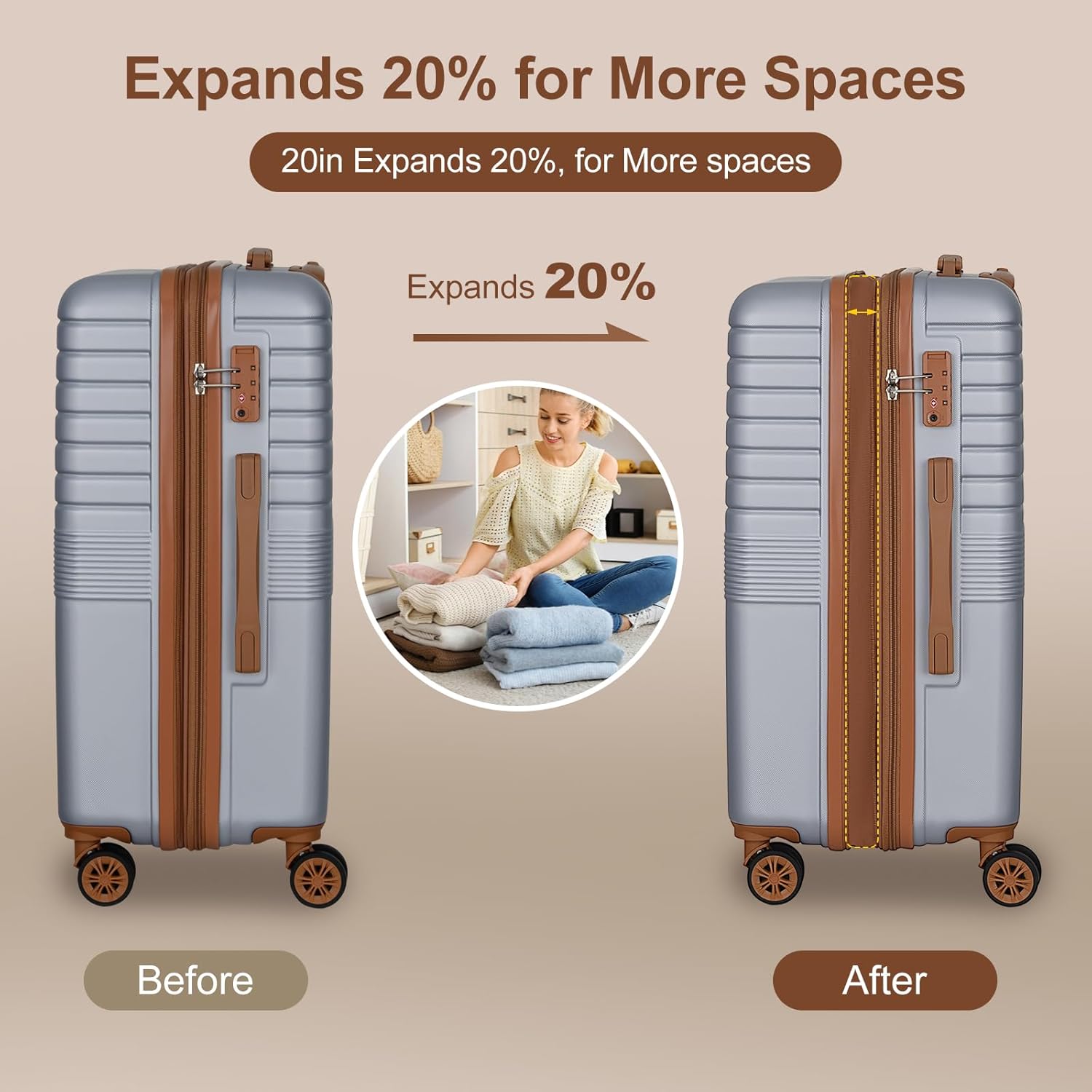 - Expandable Hardside Suitcase Sets: Open the smooth and durable expandable zipper, all of the three suitcases can expand the capacity of them by 20%. Capacity: 20in38L 24inch73L 28inch110L after expansion.
