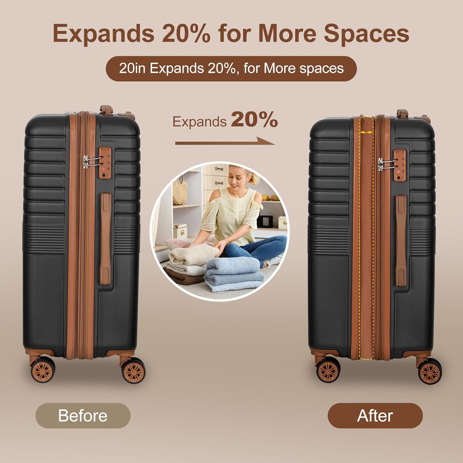 - Expandable Hardside Suitcase Sets: Open the smooth and durable expandable zipper, all of the three suitcases can expand the capacity of them by 20%. Capacity: 20in38L 24inch73L 28inch110L after expansion.