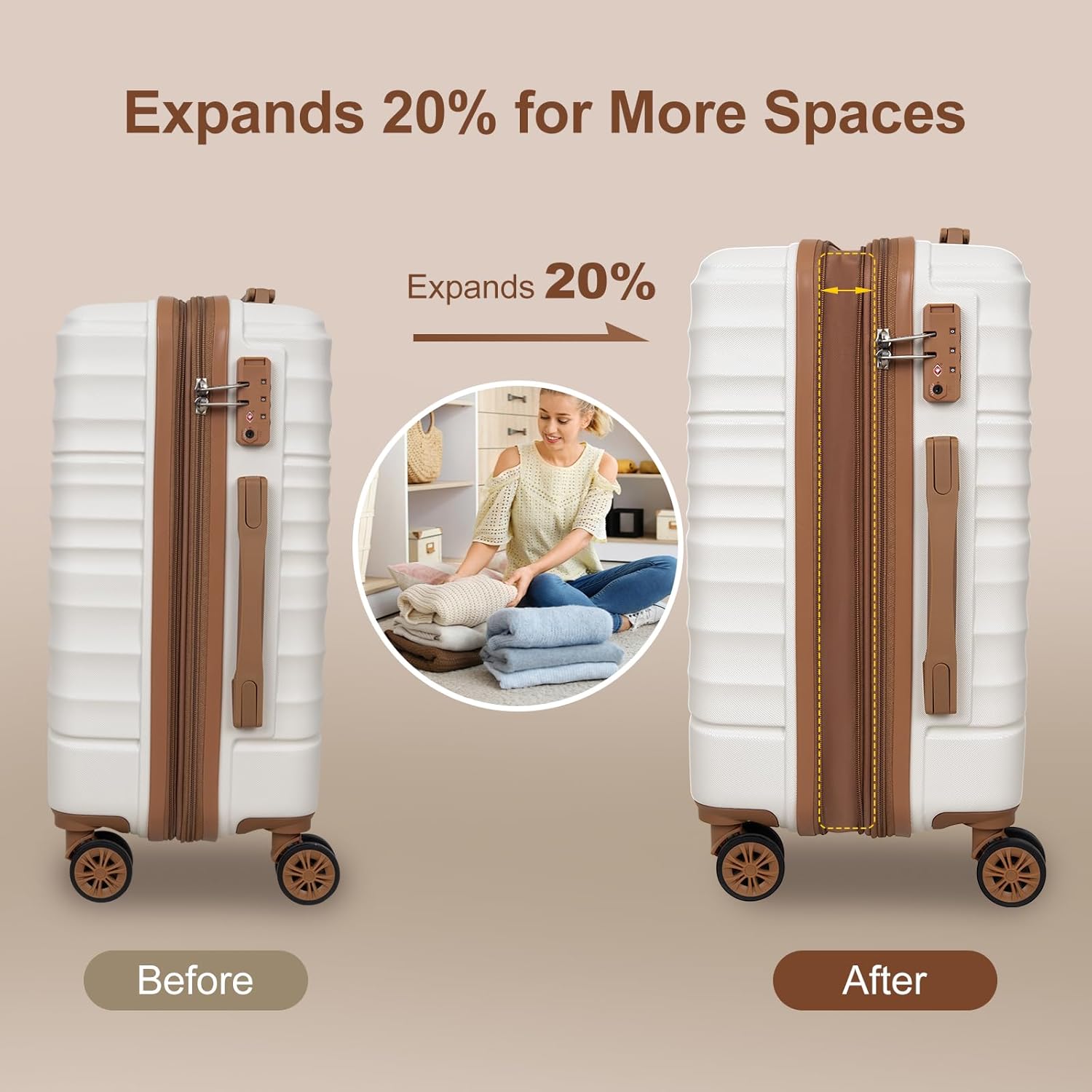 - Expandable Hard Plastic Luggage: Opening the smooth and durable expandable zipper can expand its capacity by 20% for bringing back souvenirs and additional items. Capacity: 20in38L 22inch48L 24inch 73L 28inch110L after expansion.
