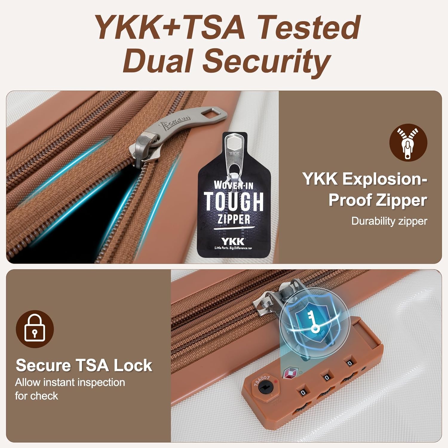 - TSA Lock and YKK Zipper: Travel Suitcase with TSA-approved dual locking system keeps luggage secured. Authentic YKK zippers come with superior durability and smooth operation.