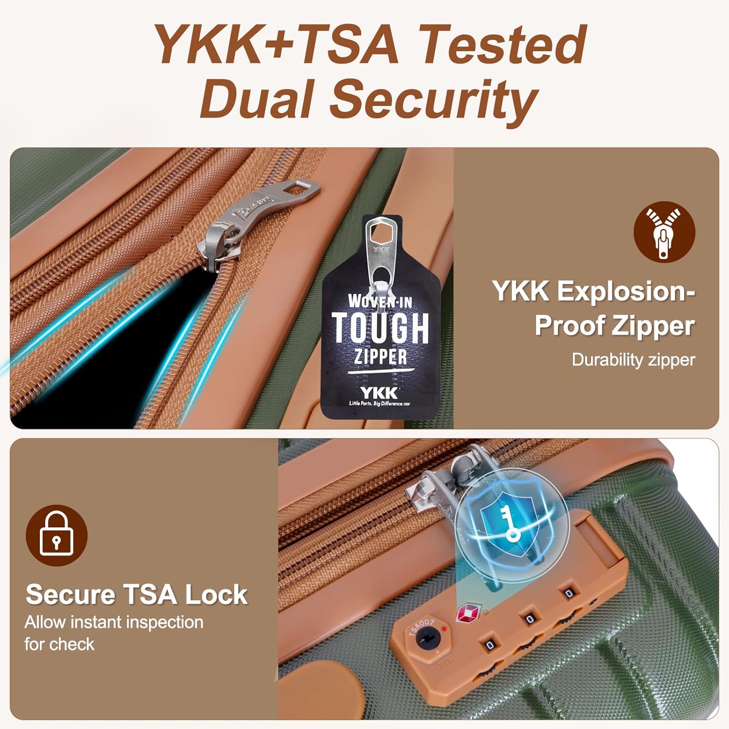 - TSA Lock and YKK Zipper: Travel Suitcase with TSA-approved dual locking system keeps luggage secured. Authentic YKK zippers come with superior durability and smooth operation.