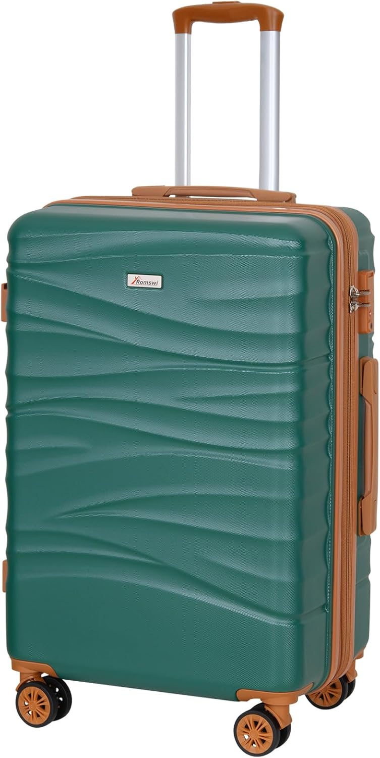 Romswi Expandable 24" Checked Luggage,Medium Hardshell Suitcase with Double Spinner Wheels for 20% More Space, Airline Approved Lightweight Hardside Luggage, Scratch-Resistant & YKK Zipper,Green