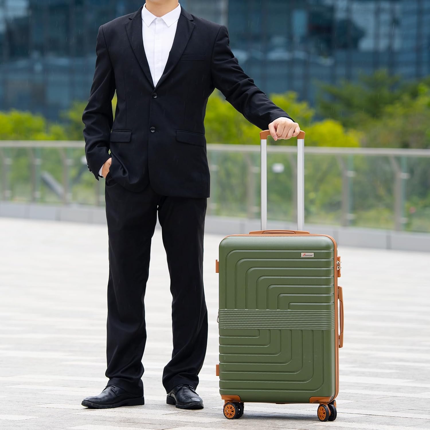 Romswi Expandable 20" Carry On Luggage,Hardshell Suitcase with Double Spinner Wheels for 20% More Space, Airline Approved Lightweight Hardside Luggage, Scratch-Resistant & YKK Zipper,Green